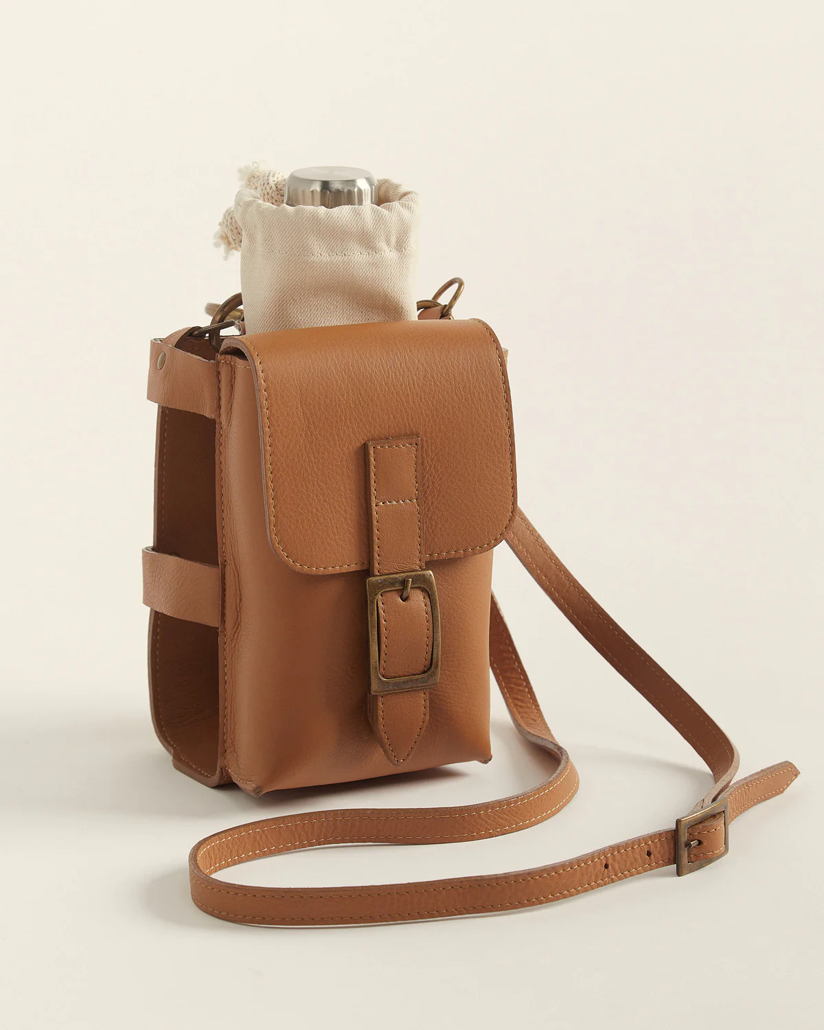 PORTA BOTELLA HORNERO CUERO | MARRON