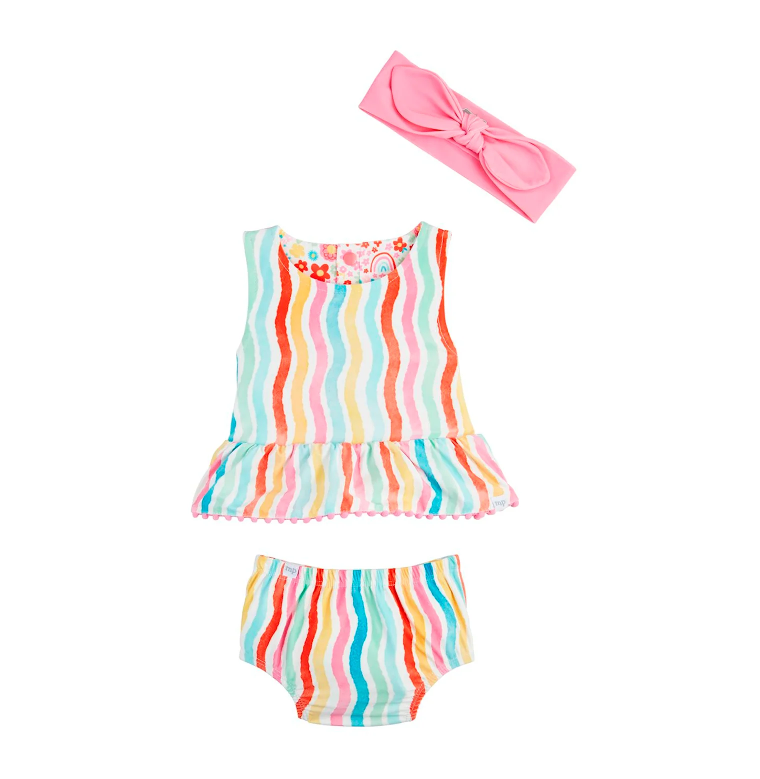 Rainbow Floral/Stripe Reversible Swimsuit & Headband Set