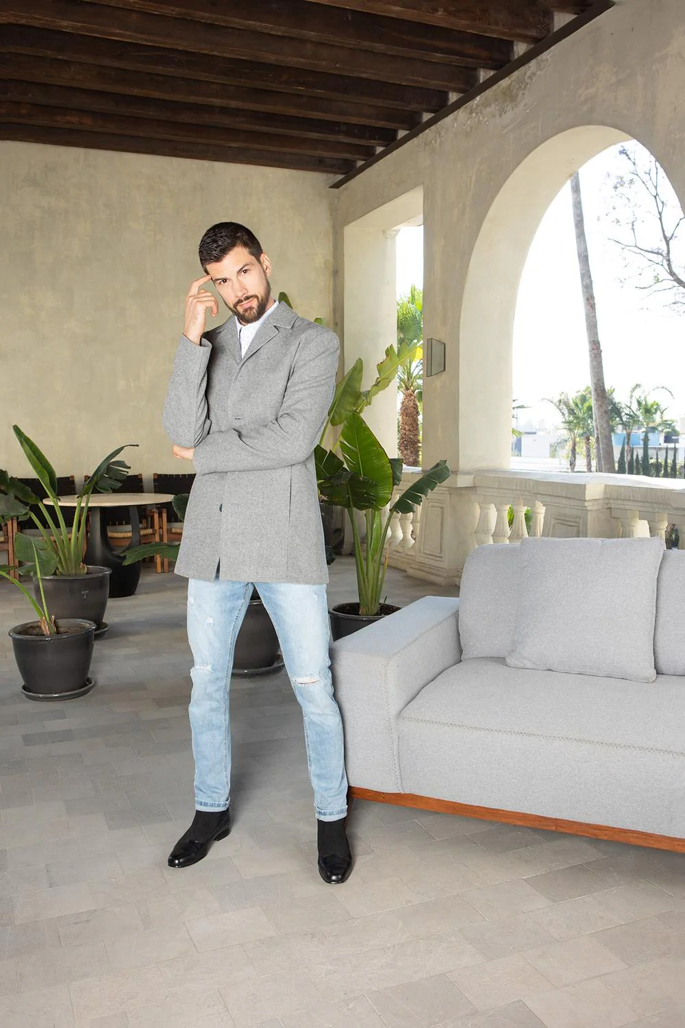- Abrigo de lana gruesa con botones a contraste y bolsillos verticales ocultos.