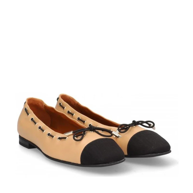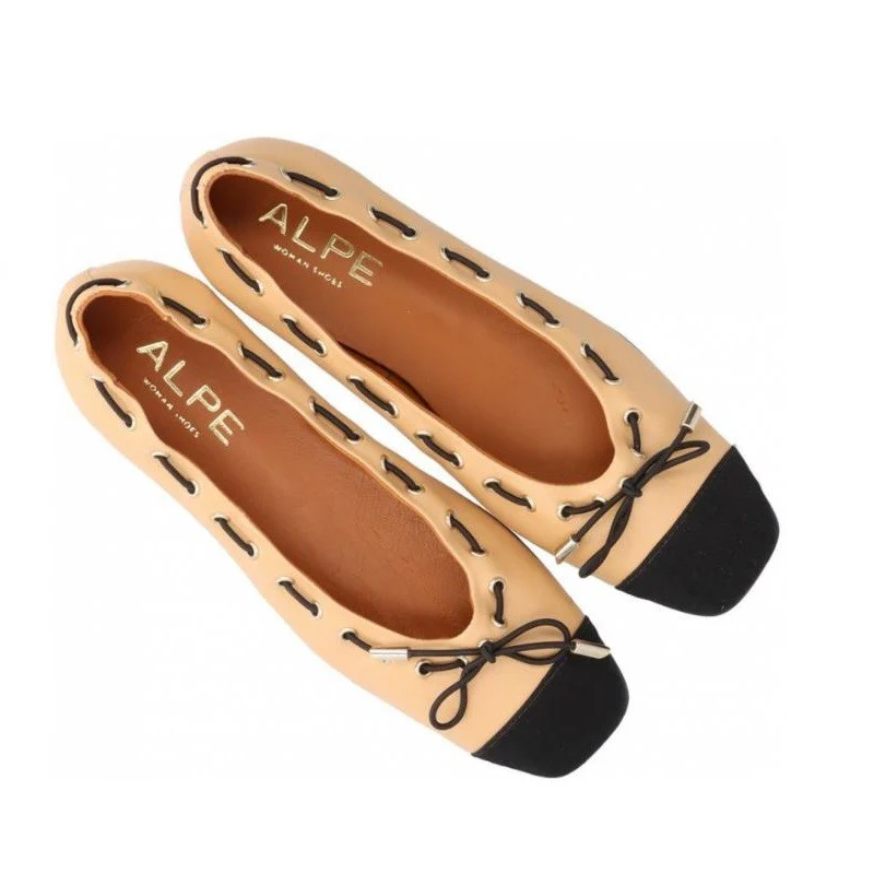 Bailarina para mujer ALPE ANAIS, fabricada en piel (chiffon) de color camel con tacón de 1 cm, suela antideslizante y puntera redonda, sin cierre.