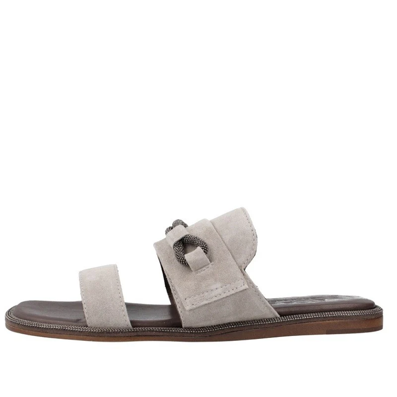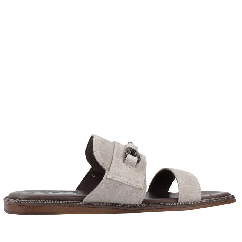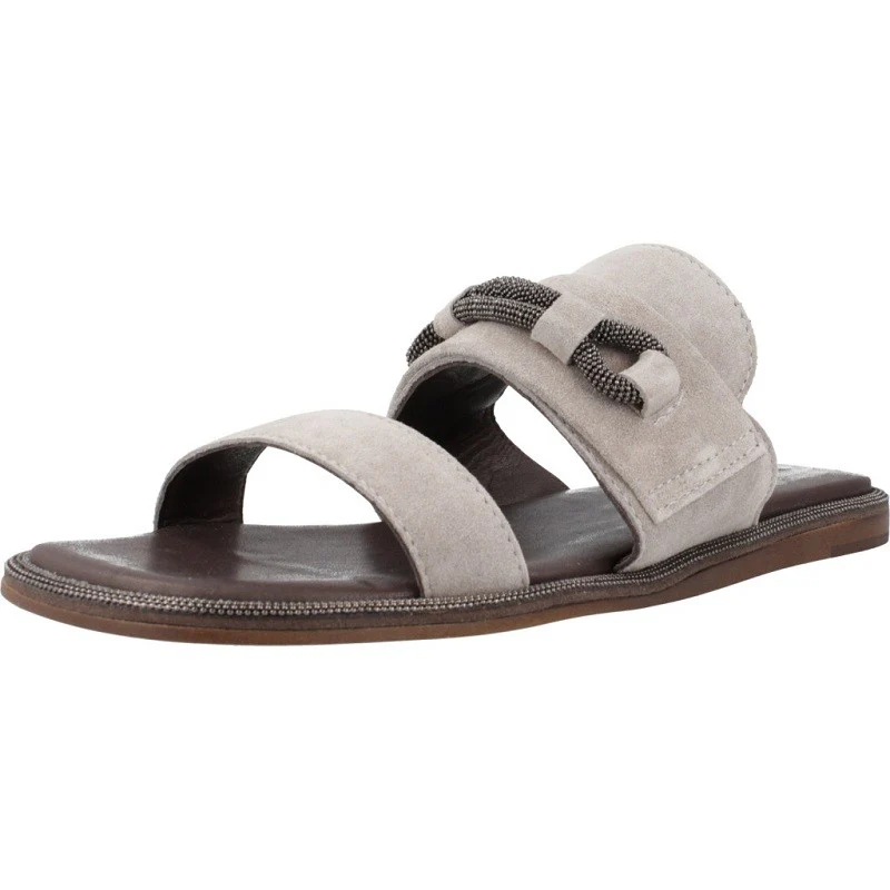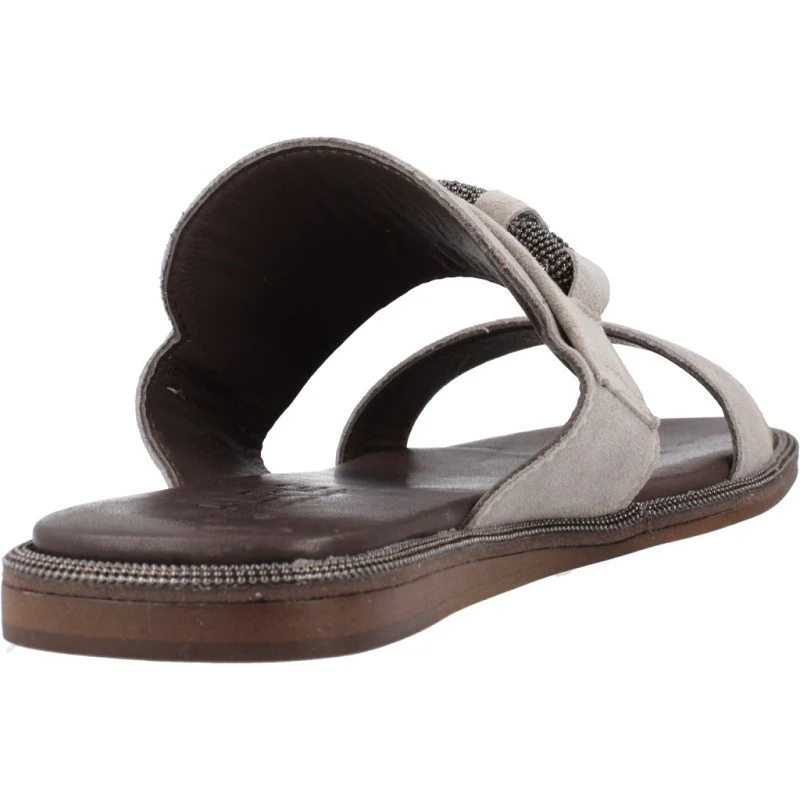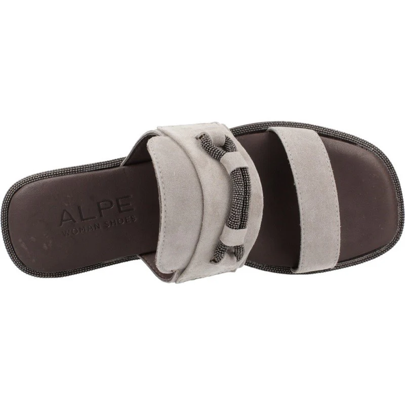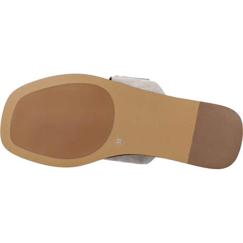 Sandalia para mujer ALPE CIUDADELA, fabricada en piel (ante) de color taupe, puntera cuadrada y suela antideslizante, sin cierre.
