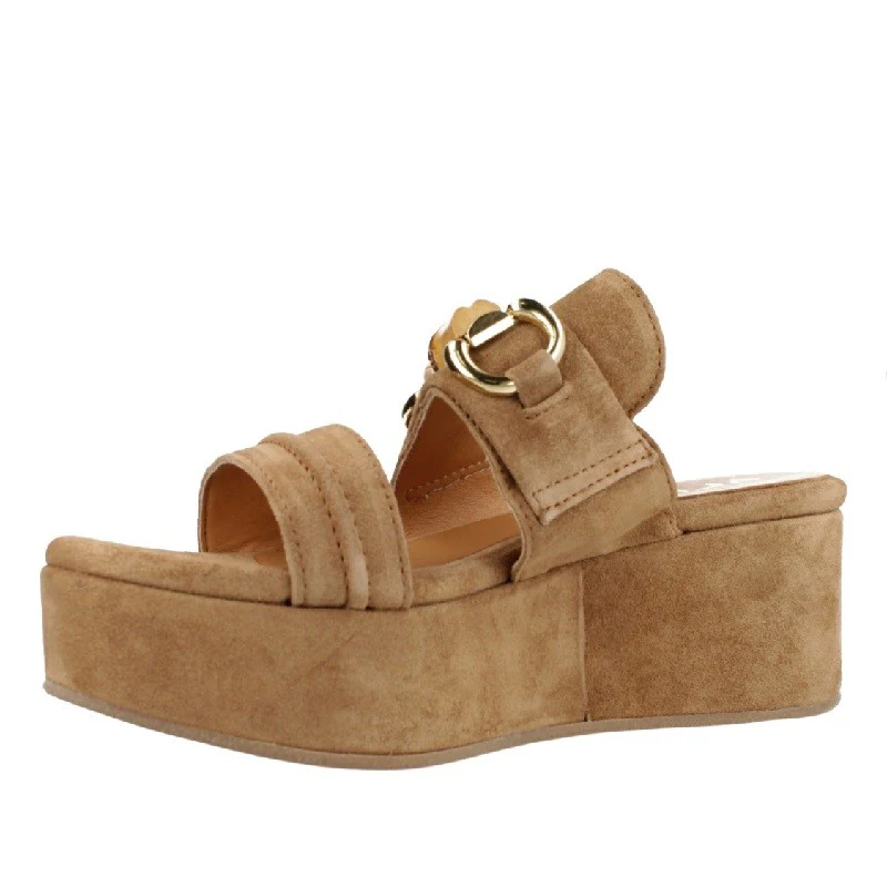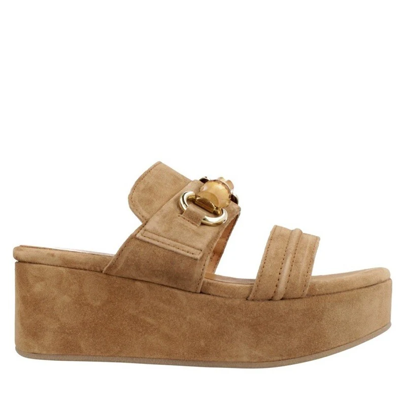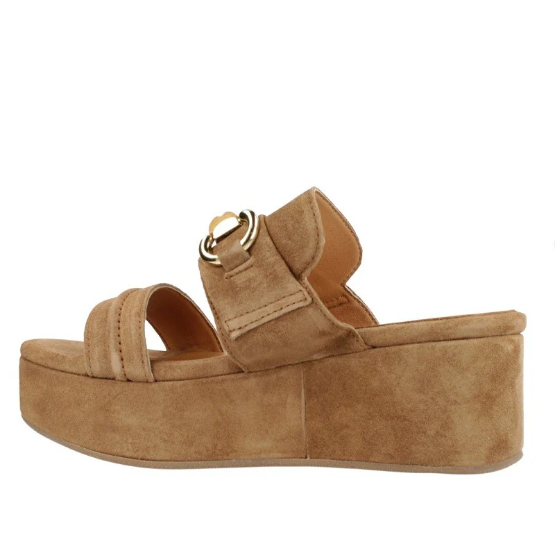 Sandalia para mujer ALPE SITGES, fabricada en piel (baby silk) de color cuir con plataforma de 6 cm, suela antideslizante y puntera redonda