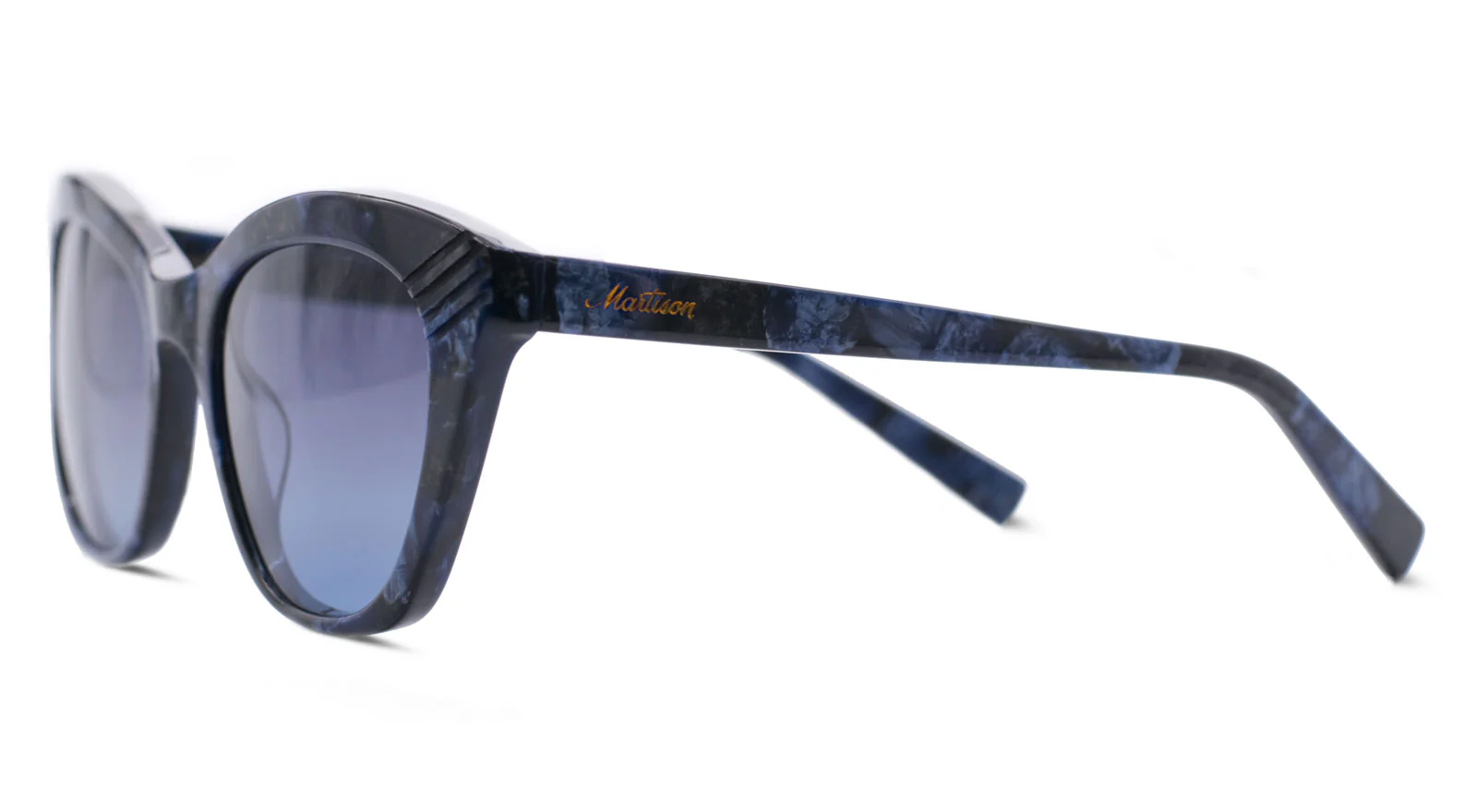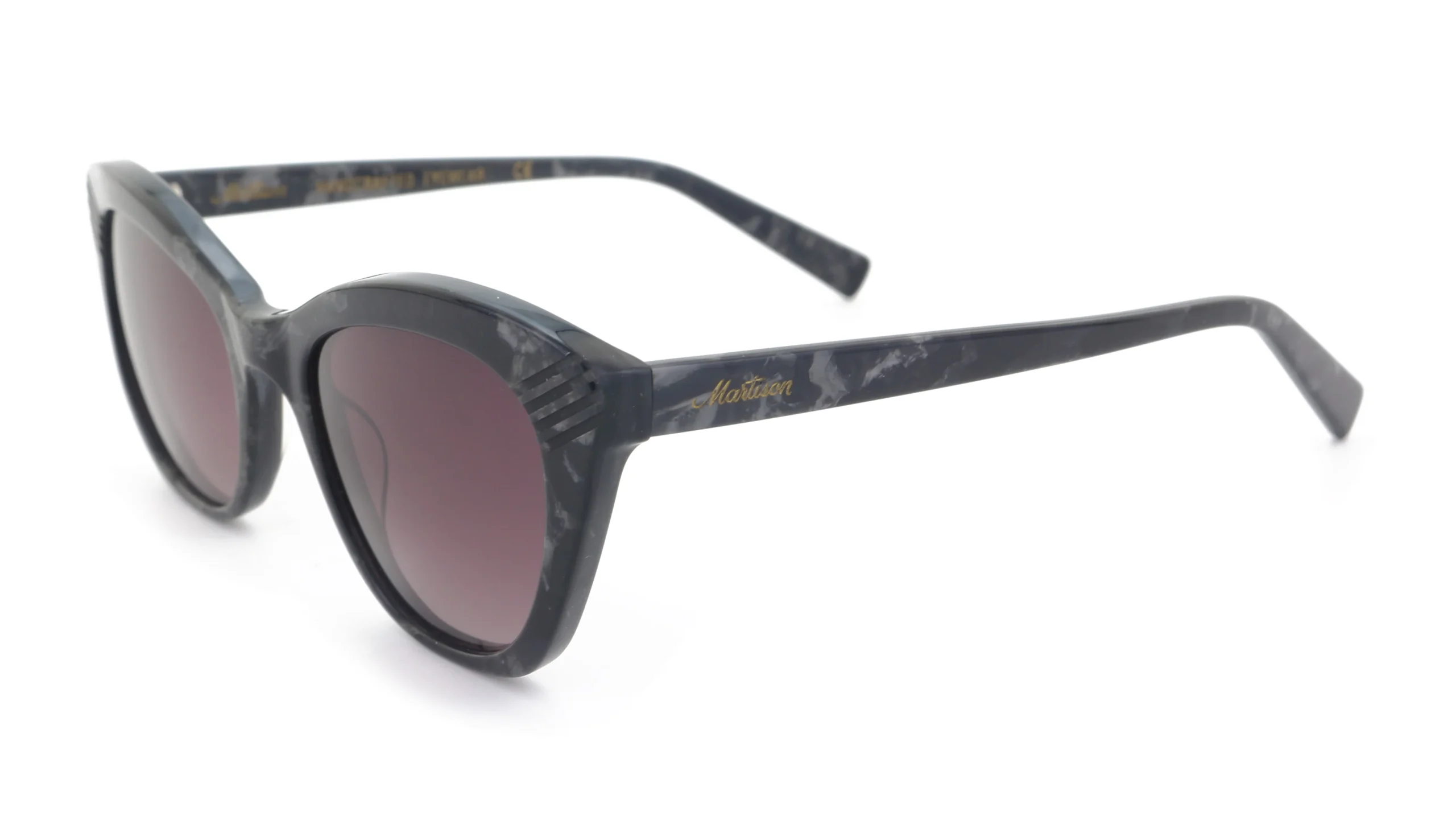 Montura con forma de ojo de gato, elegante y con actitud. Sus hendiduras frontales realizadas con láser aportan un toque distintivo que convierte esta pieza en algo único, pensado para quienes buscan diseño con personalidad.