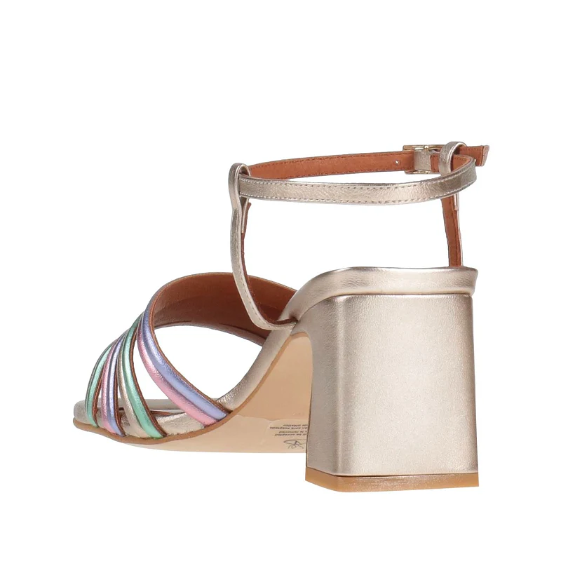 Sandalia de la marca ANGEL ALARCON modelo 23042-528 color MULTICOLOR en piel de primera calidad color bronce y tiras en colores que son el complemento perfecto para elevar cualquier conjunto, ya sea de día o de noche. Plantilla embautada para una máxima comodidad y cierre de hebilla en el tobillo.
