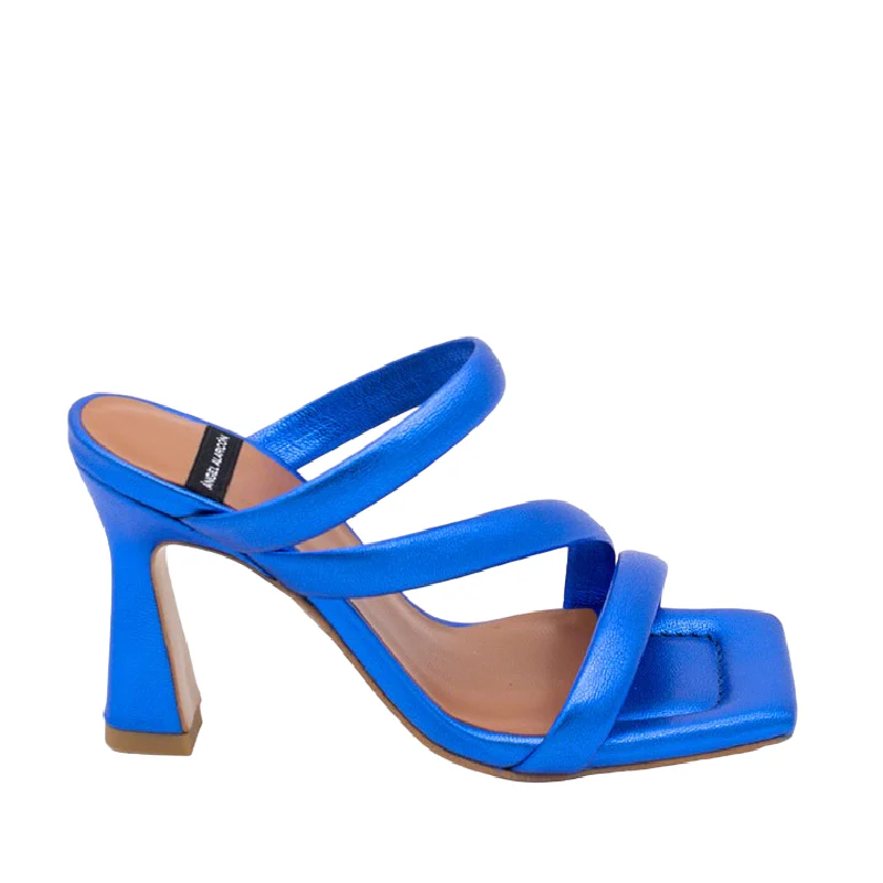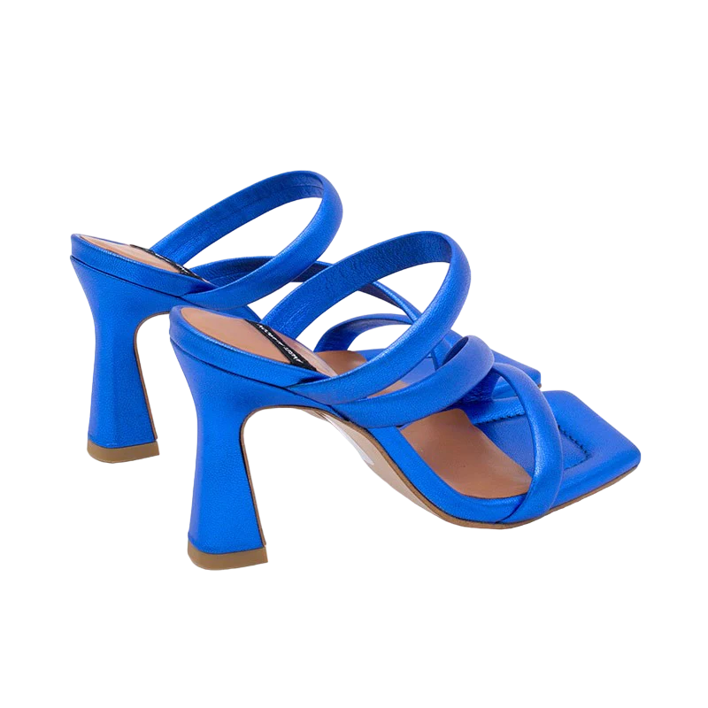 Sandalias con tacón alto y plantilla almohadillada. Piel metalizada Este modelo es una sandalia espectacular que sujeta muy bien el pie gracias a la posición de sus tiras anchas acolchadas. Tiene el tacón alto (8’5 cm) y una plantilla acolchada muy cómoda.