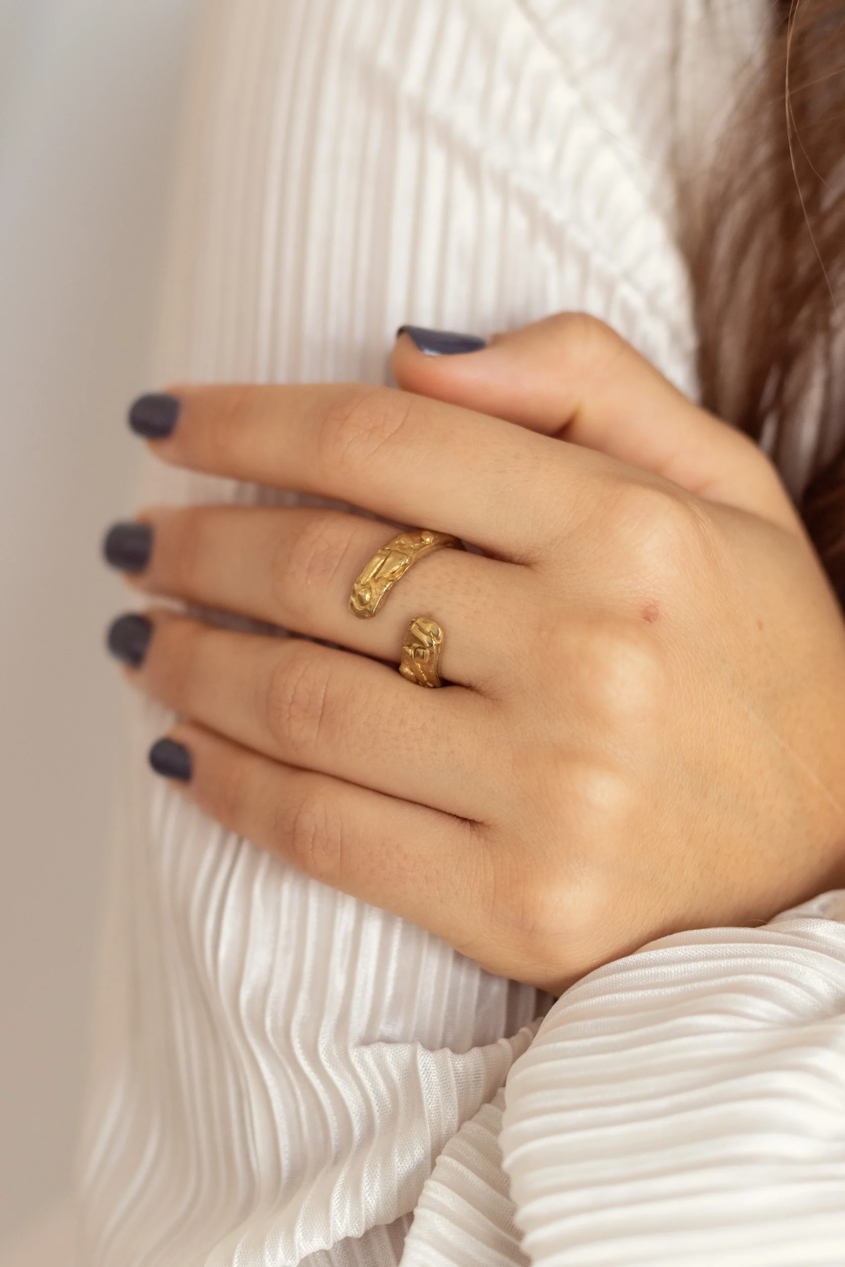 Ideal para quienes buscan un accesorio sofisticado y con un toque orgánico, este anillo resalta por su delicadeza y estilo atemporal.