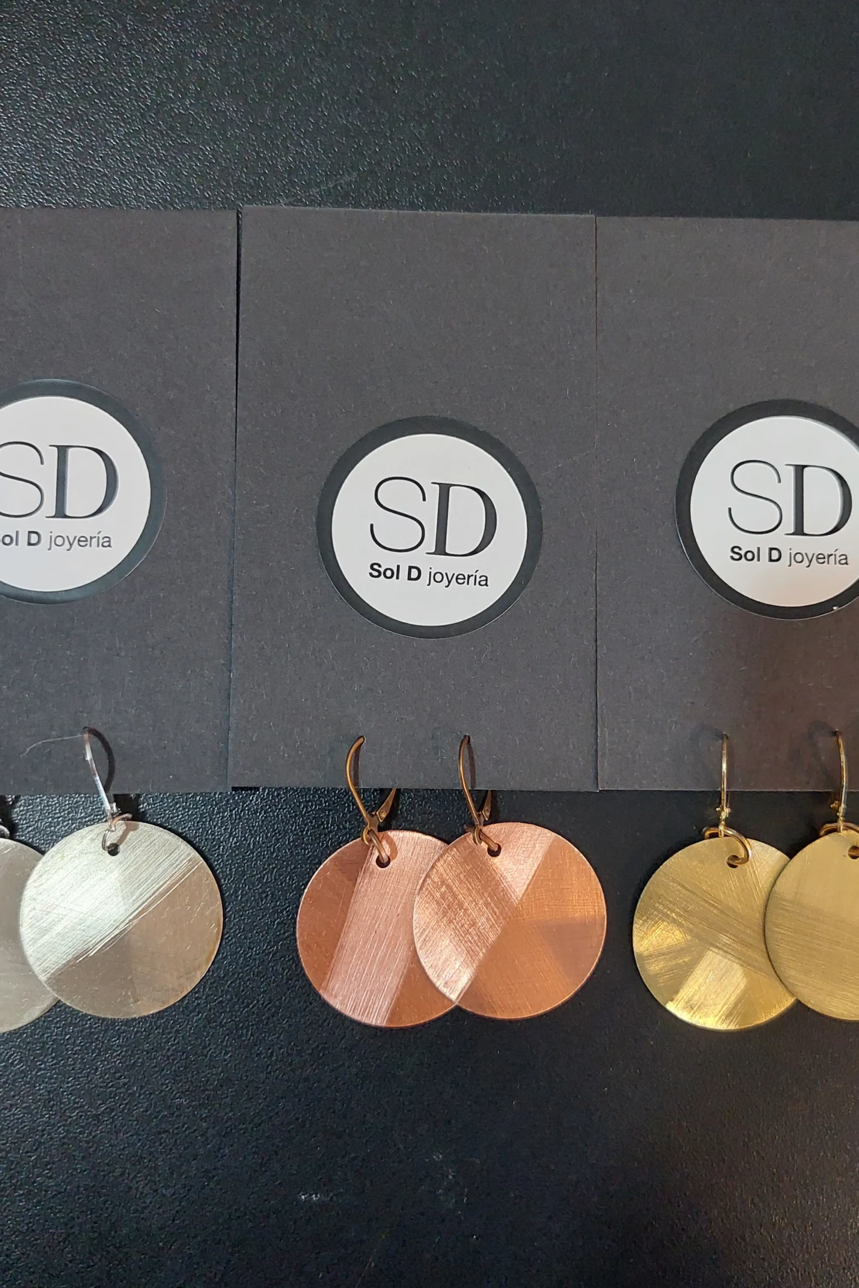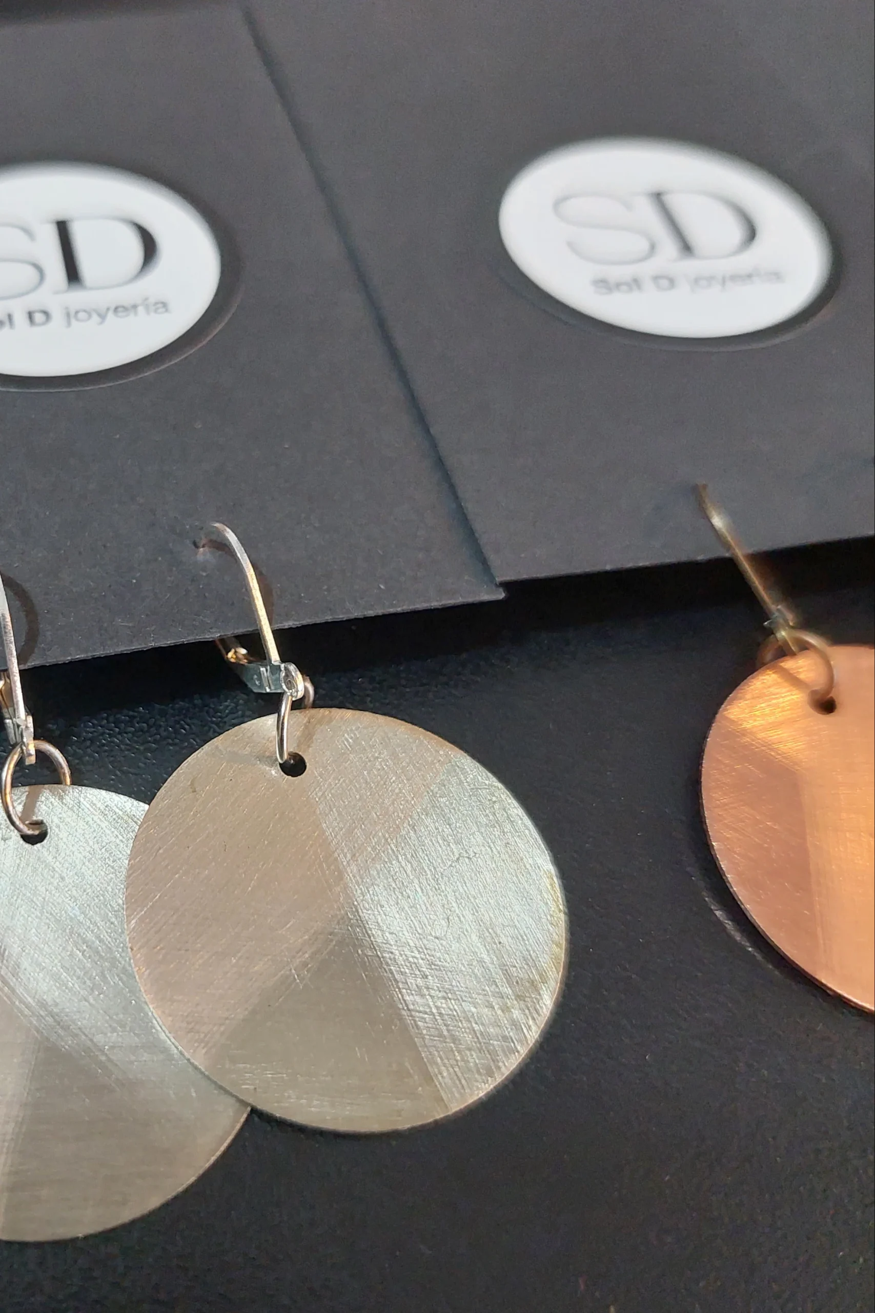 | Aros colgantes realizados en alpaca, bronce o cobre. |