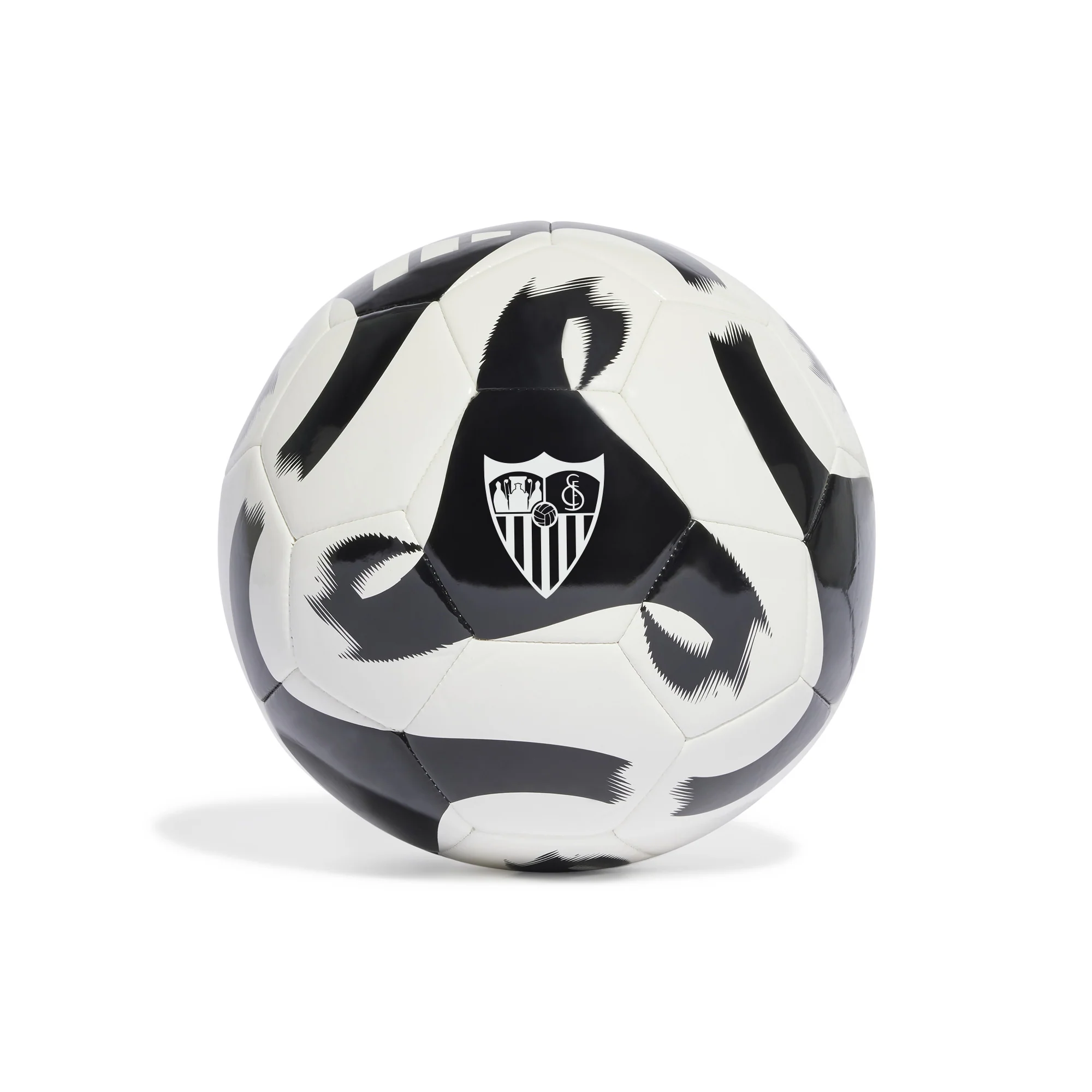Balón blanco con escudo y eslogan del Sevilla FC. Balón de fútbol de tamaño estándar.