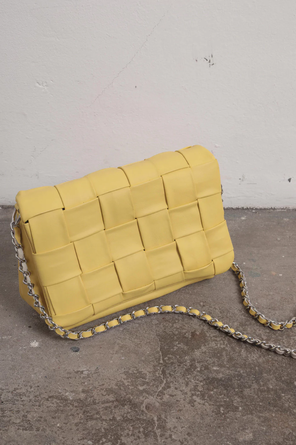 Bandolera de CUERO matelasse con cuadrados en tapa
