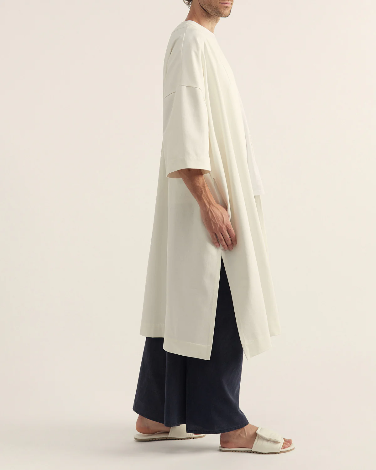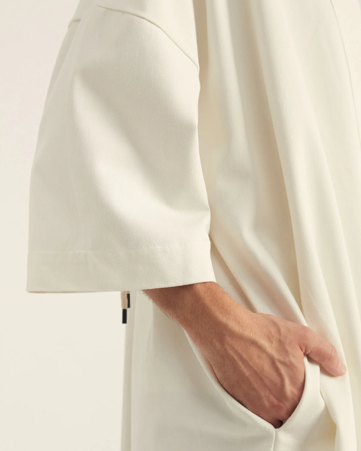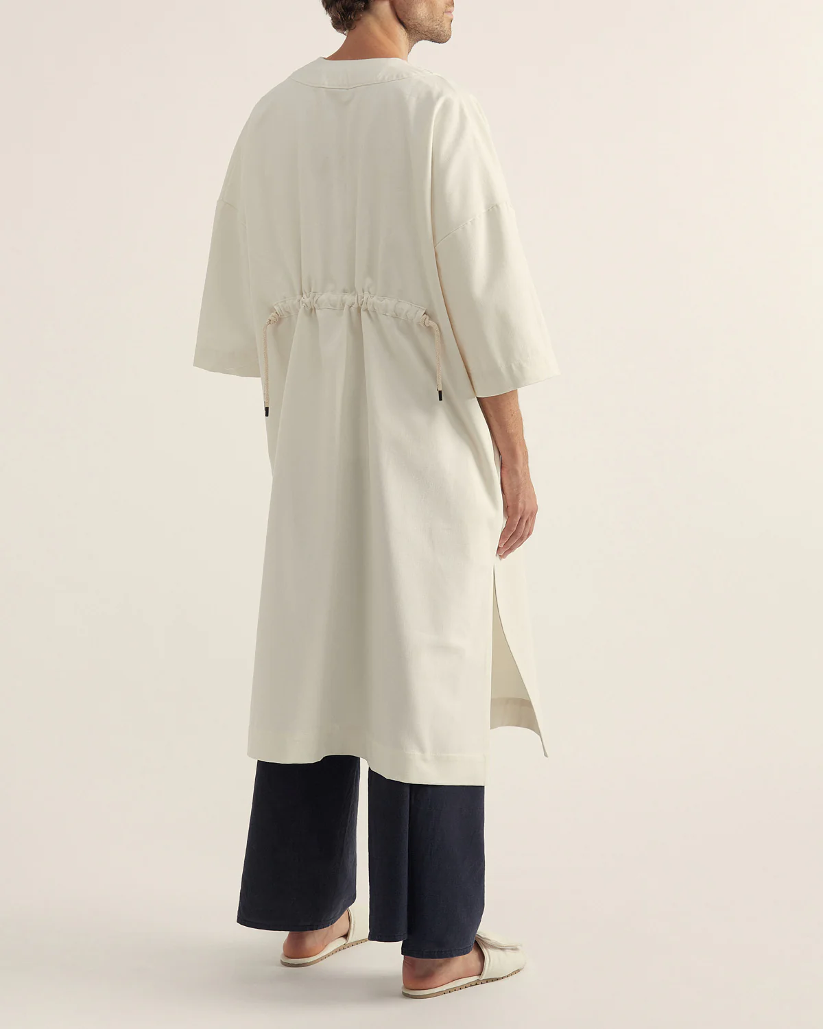 Bolsillos en laterales y frunce en espalda. Atemporal y genderless.