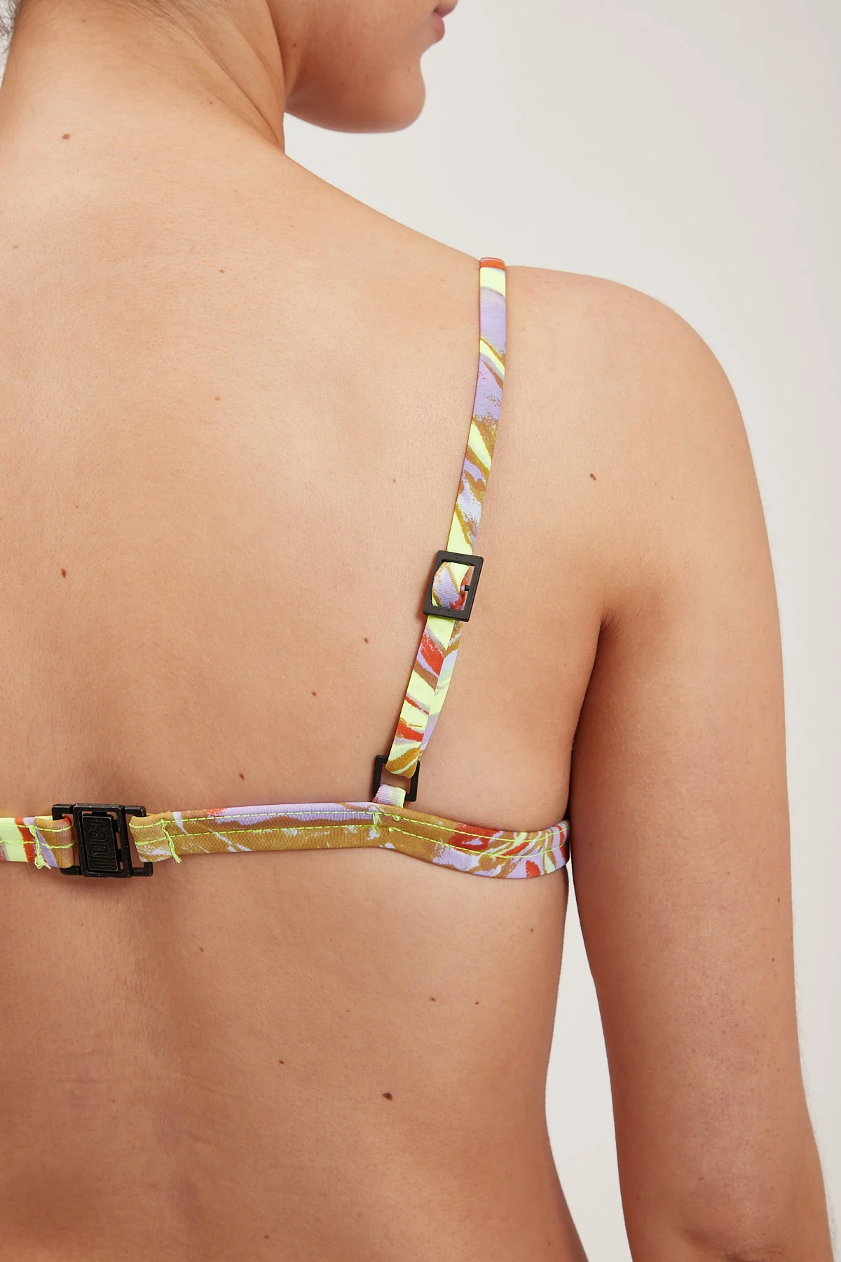 Bikini con top triangulito fijo. Breteles con reguladores y gancho en espalda. Podes combinarlo con la braga Tanga que hace juego o con cualquiera de nuestras bombachas del mix&match. Lycra con protección UV+50. El precio es por el conjunto.