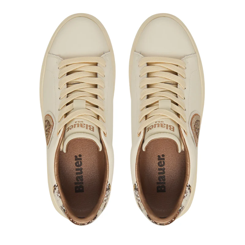 Las deportivas Blauer Venus F5Venus01/PYT en color beige combinan cuero natural de flor en la parte superior con interior de tejido para máxima comodidad y transpirabilidad. Su suela gruesa de 4 cm fabricada con materiales de alta calidad ofrece durabilidad y soporte en cada paso. El cierre de cordones garantiza un ajuste seguro, mientras que el detalle en circonia cúbica añade un toque sofisticado. Ideales para un uso casual, estas zapatillas aportan estilo y confort en cualquier ocasión.