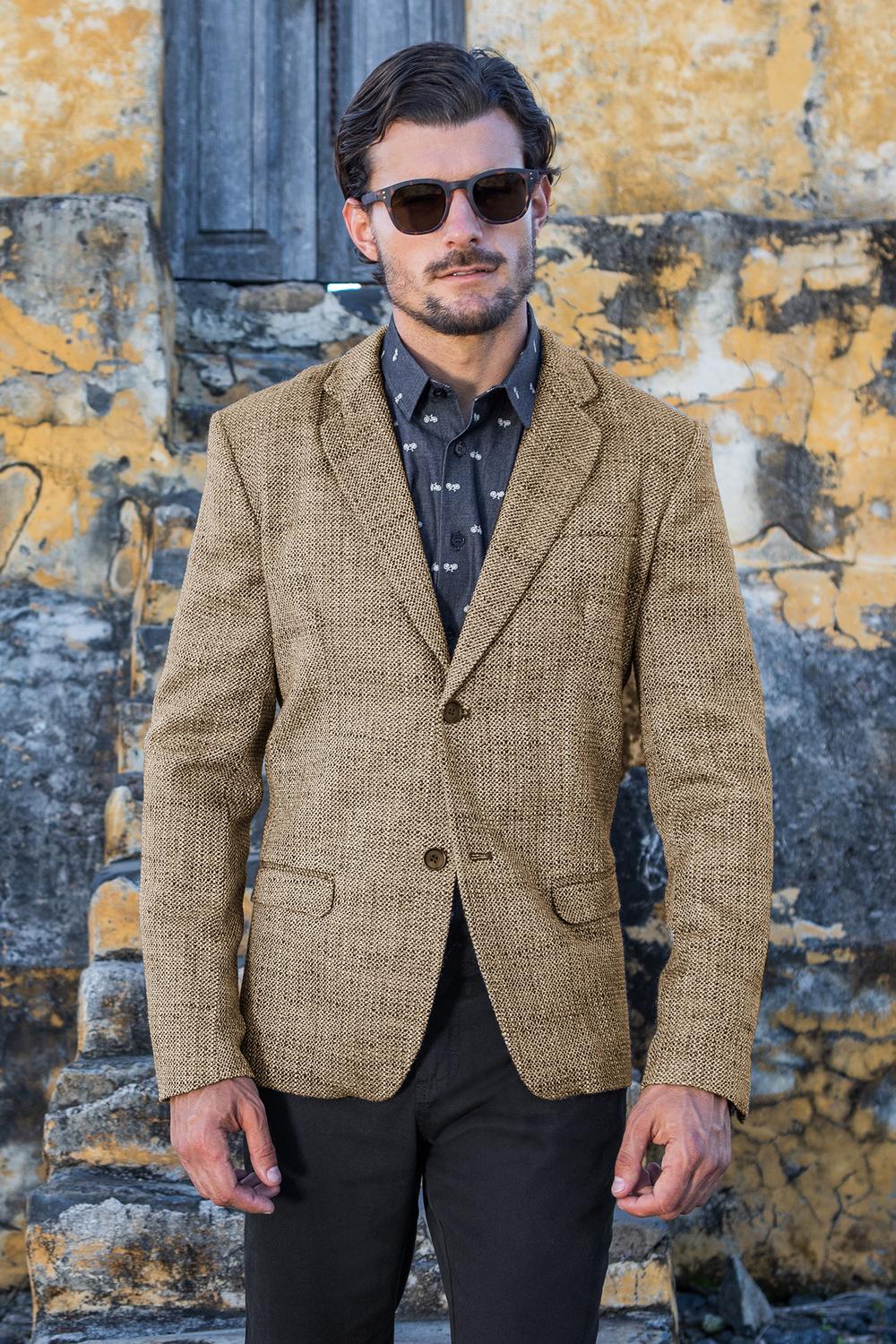 Blazer tejido con solapa, bolsillos delanteros, botonadura y detalle de carteras decorativas. Código de producto 42-0307