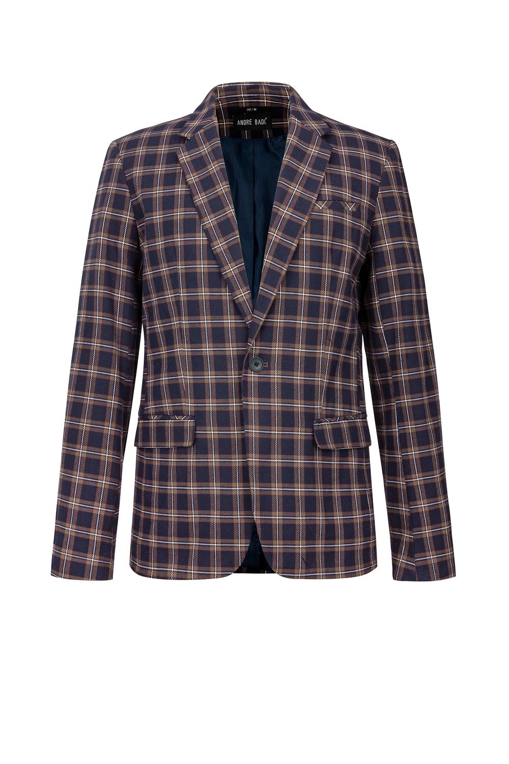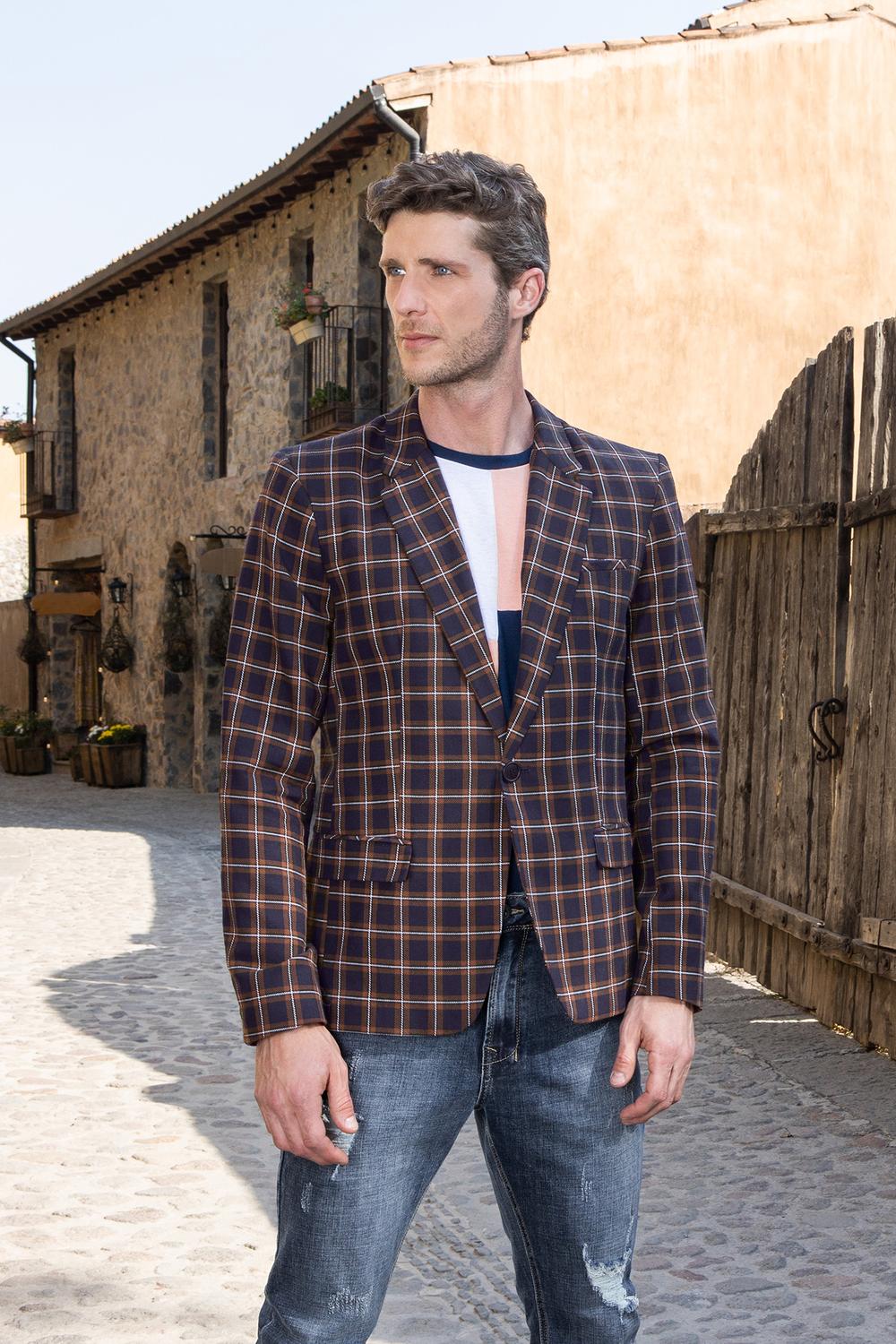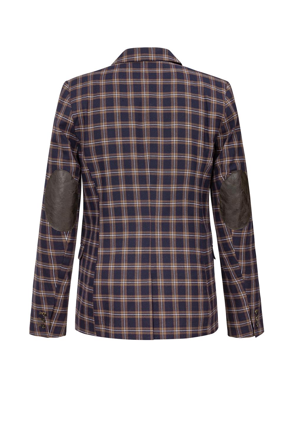 - Blazer a cuadros con cuello, solapa, bolsillos con carteras, vivo decorativo frontal, mangas largas y coderas en contraste de polipiel.
