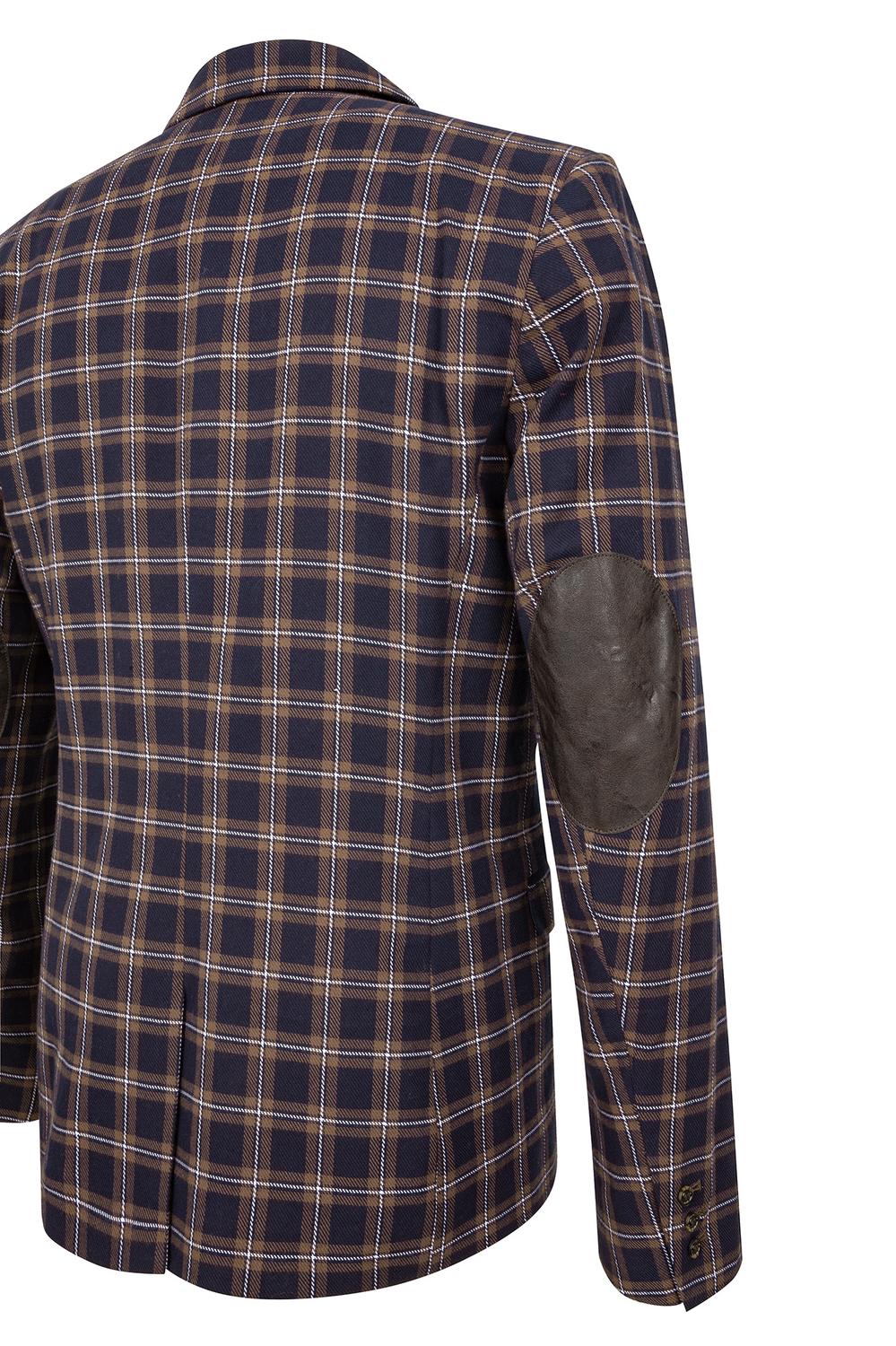 Blazer a cuadros con cuello, solapa, bolsillos con carteras, vivo decorativo frontal, mangas largas y coderas en contraste de polipiel.