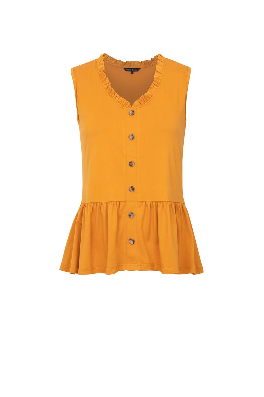 Blusa con olán en cuello «V», botonadura decorativa y plisado en cintura. Código de producto 27-2081
