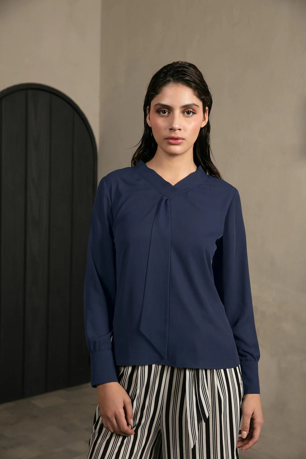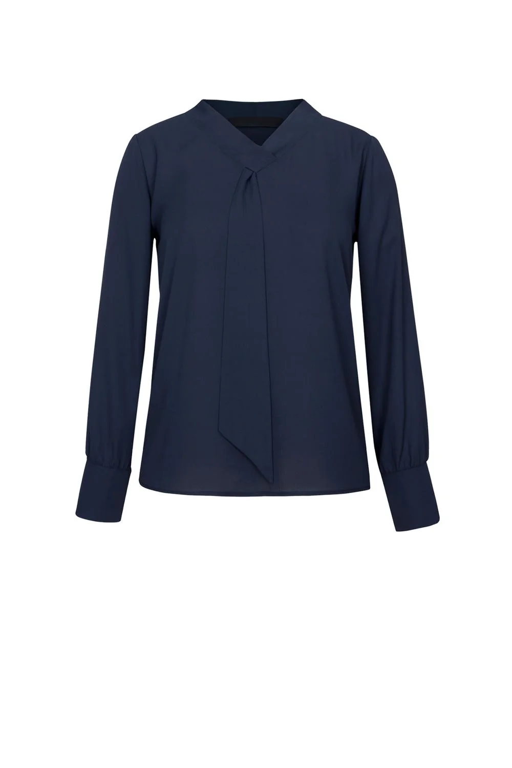 Blusa, escote en ”V” con lazo cruzado, mangas largas y puños anchos con botones forrados. 27-2692