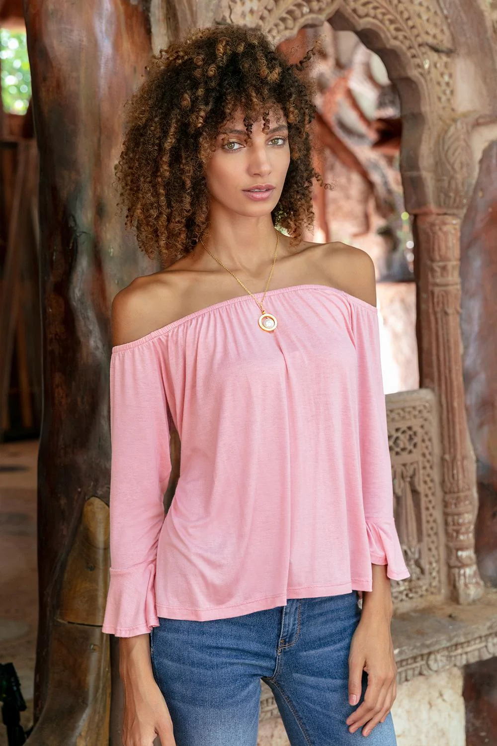 - Blusa con hombros descubiertos, fit holgado, mangas 3