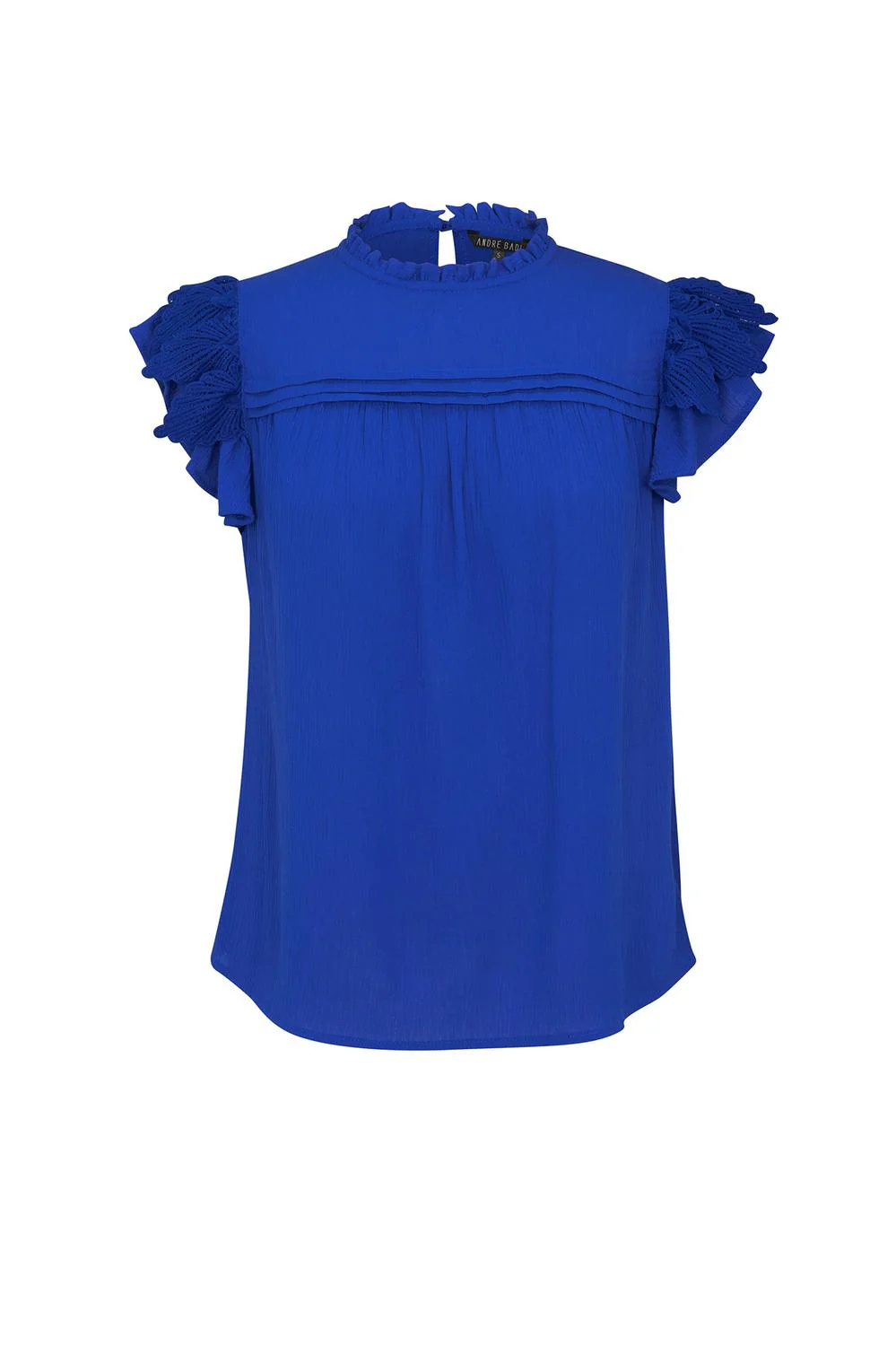 Blusa con cuello redondo, alforzas en bata delantera, olanes y aplicación decorativa en sisas. 27-2668