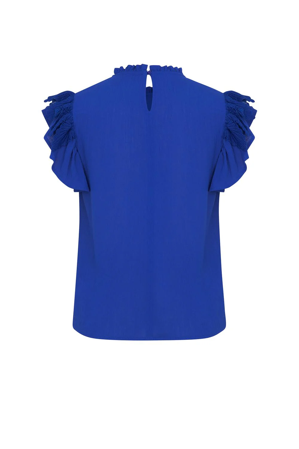 - Blusa con cuello redondo, alforzas en bata delantera, olanes y aplicación decorativa en sisas.