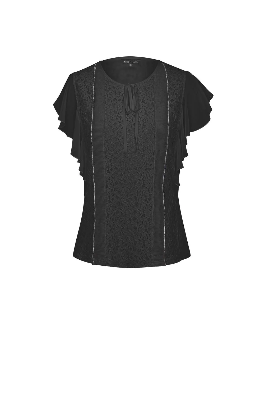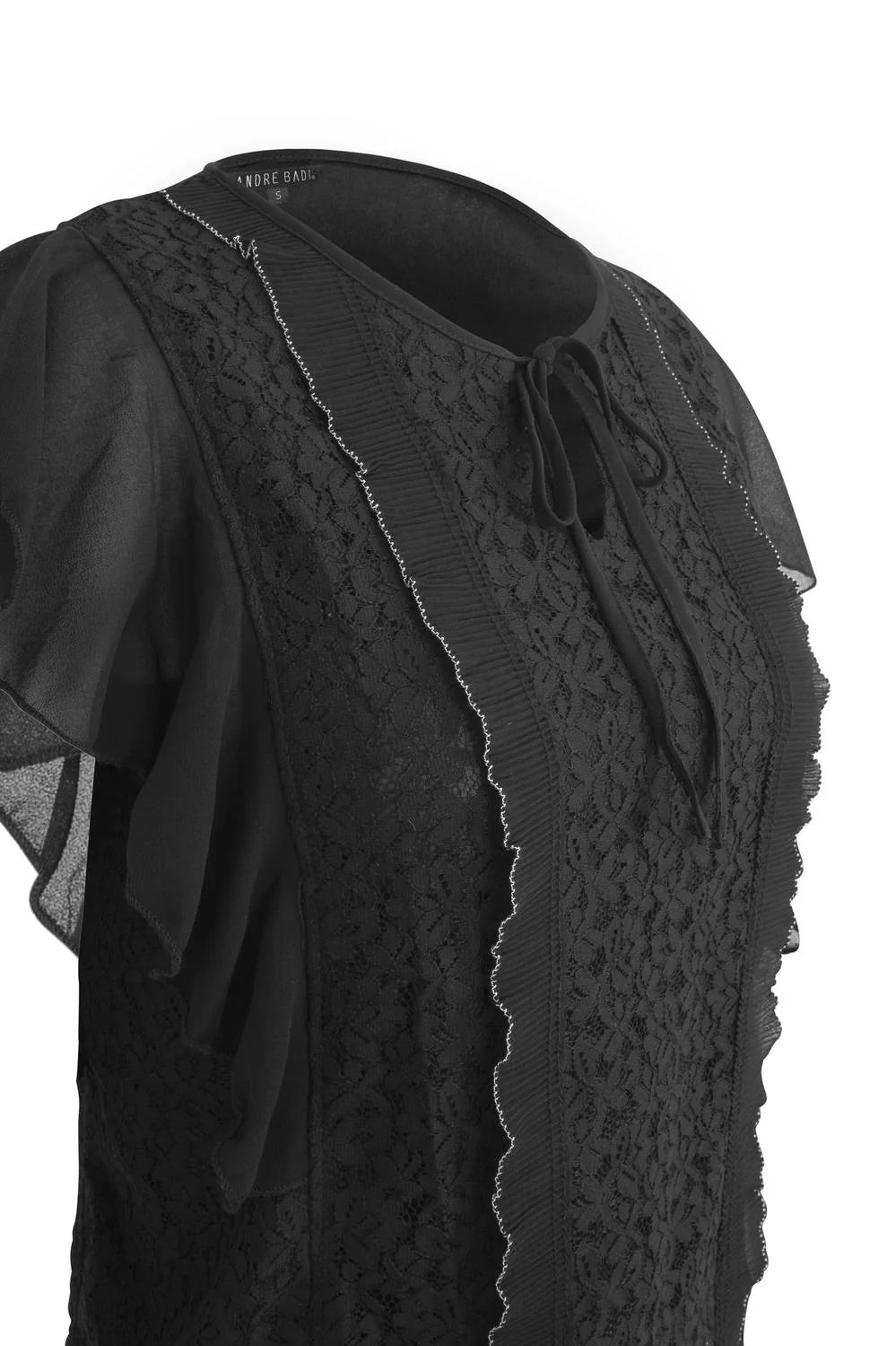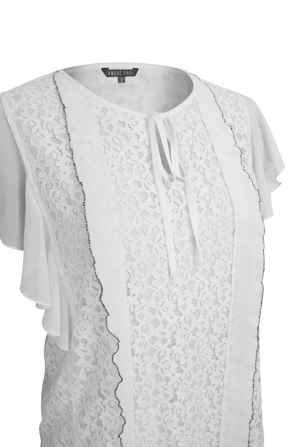 André Badi Blusa de encaje con escote redondo, lazo decorativo, olanes en delantero y sisas. Composicion100% Poliéster Modelo 27-2493
