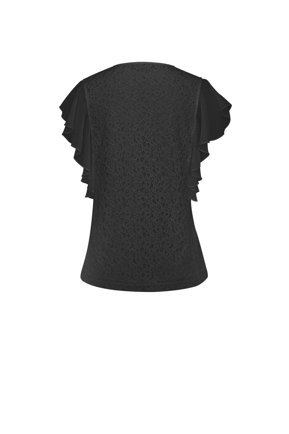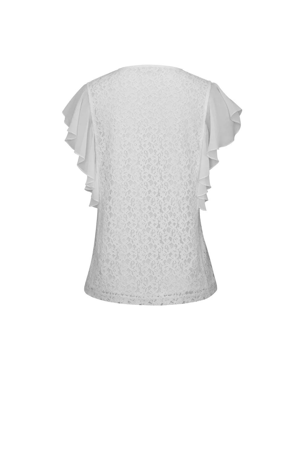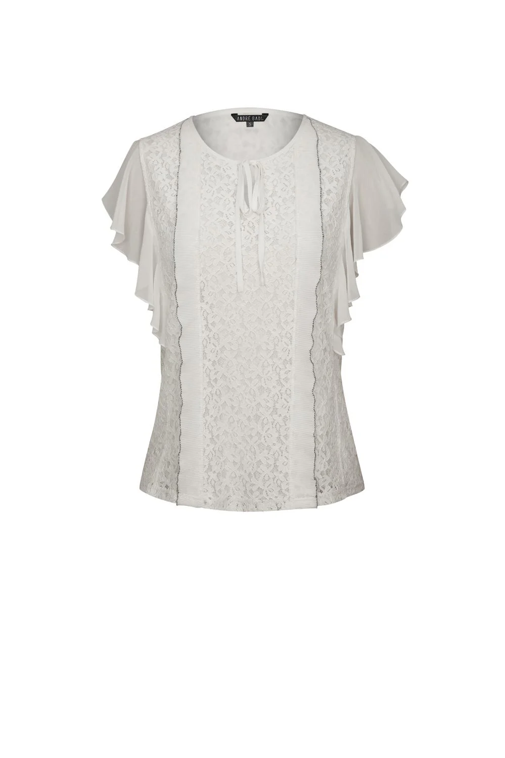André Badi Blusa de encaje con escote redondo, lazo decorativo, olanes en delantero y sisas. Composicion100% Poliéster Modelo 27-2493