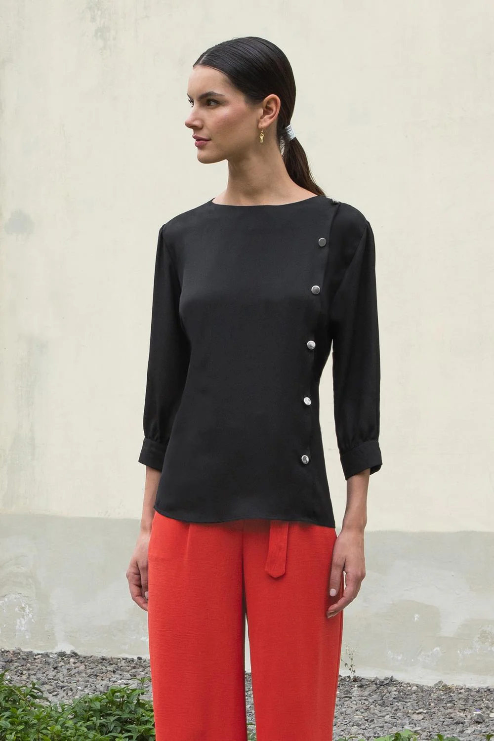Blusa con cuello redondo, aletilla lateral funcional, fit regular y mangas 3/4 con puños. 27-2673