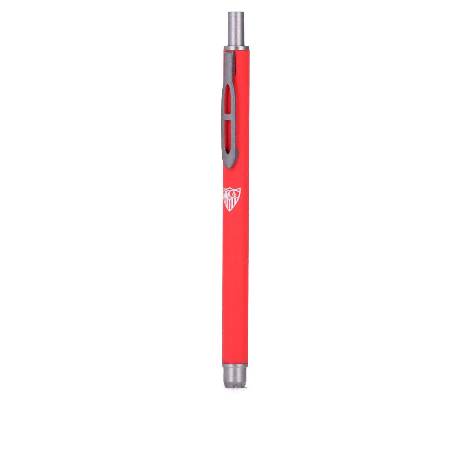 Bolígrafo de metal rojo, con el escudo del Sevilla FC, es perfecto para los más forofos del Club. Alta resistencia. Este producto va acompañado de una bonita caja corporativa del equipo.