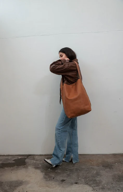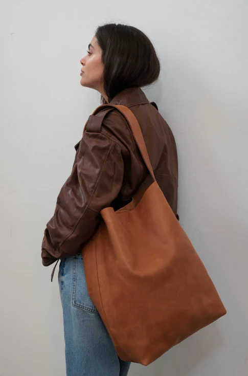 Bolso de CUERO con bolsillo interno. Su tamaño es ideal para tus días súper cargados.