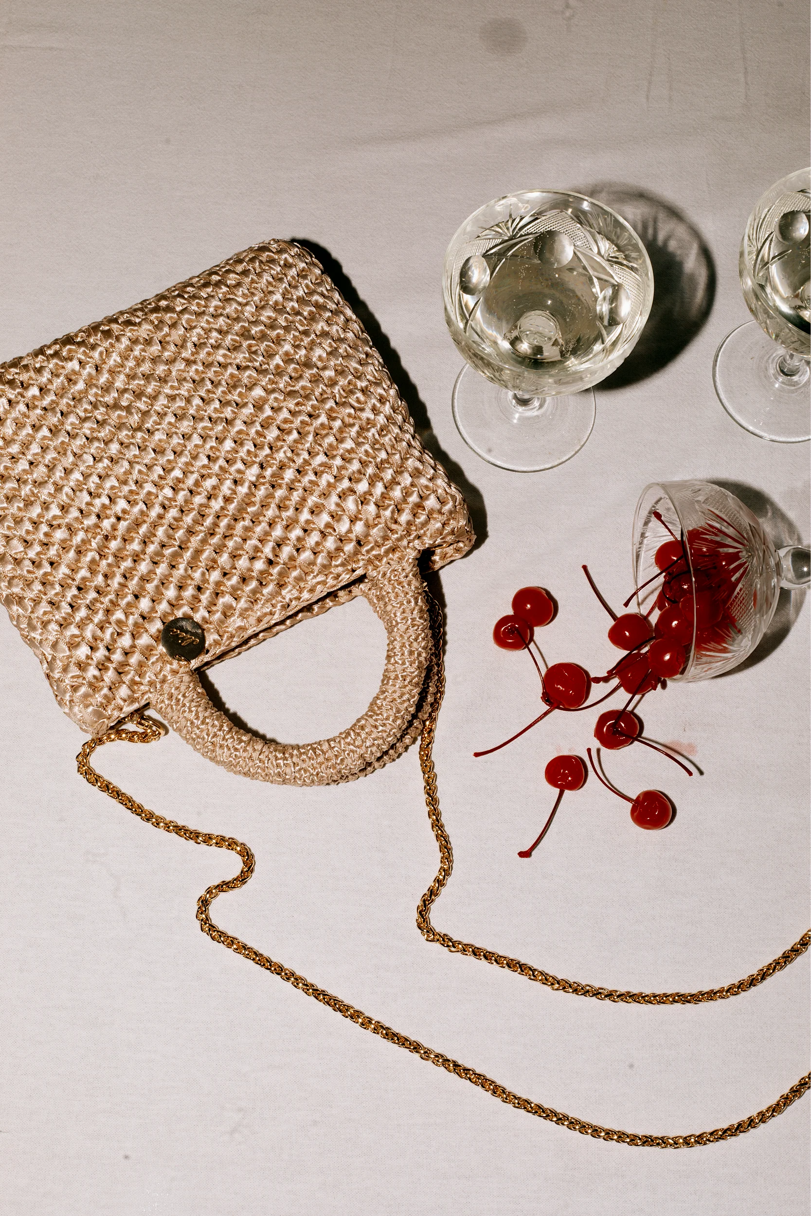 Elegante bolso tejido a mano con cinta, ideal para complementar cualquier look. Su diseño versátil incluye un forro satinado que aporta un acabado sofisticado. Cuenta con dos opciones de asa: una corta para llevarlo en la mano y una larga metálica removible para usarlo como crossbody. Disponible en color beige, un tono neutro y combinable para cualquier ocasión.