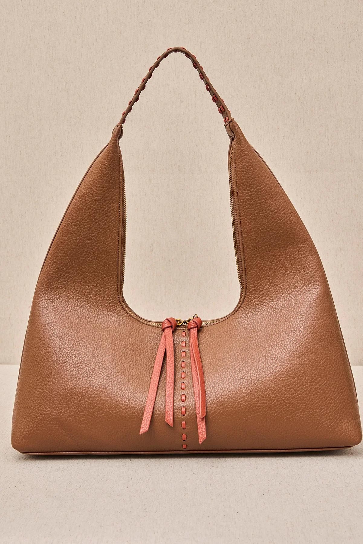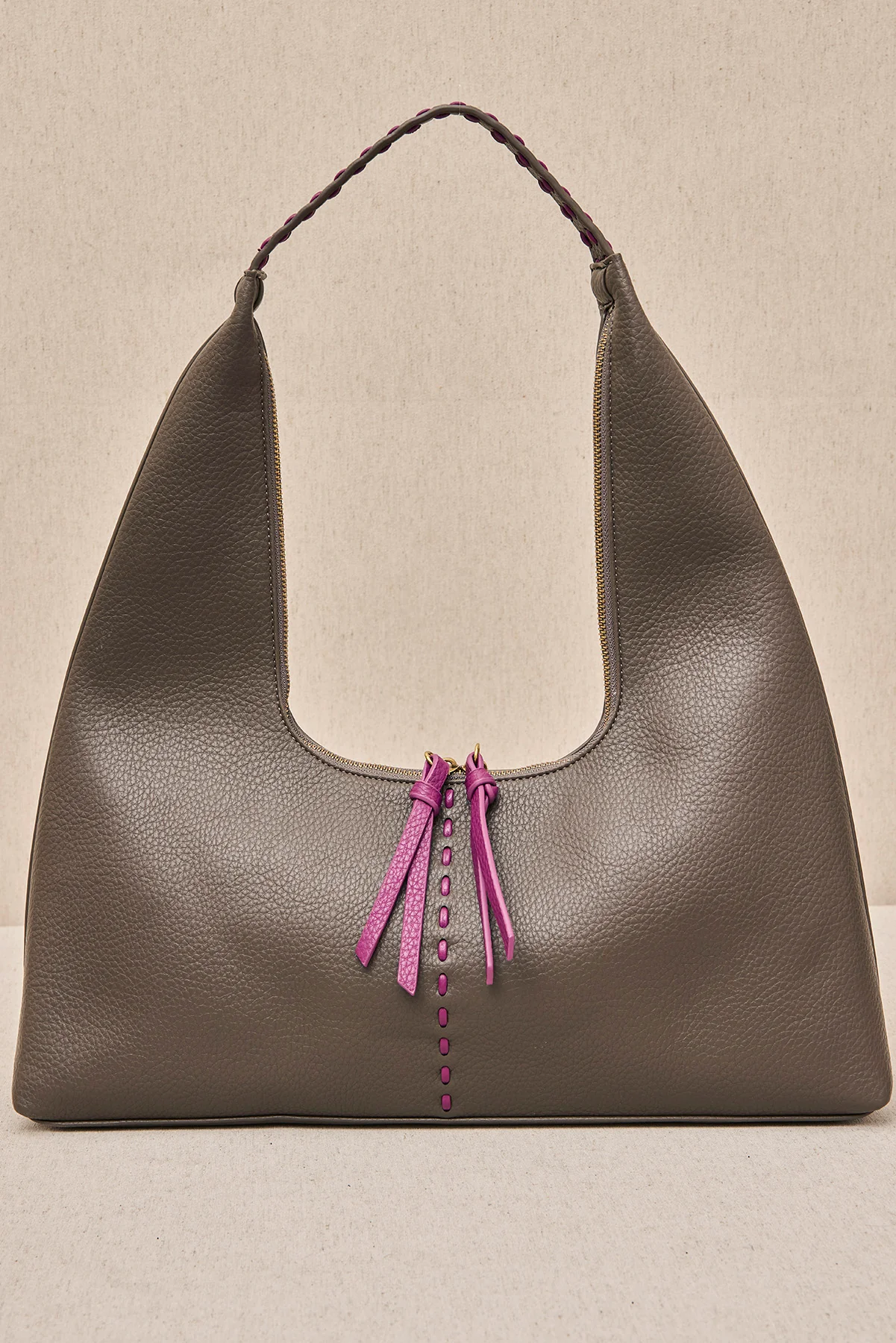 Un bolso urbano amplio y estructurado, confeccionado en piel ecológica con detalles de costuras decorativas en contraste. Su diseño limpio y contemporáneo se eleva con un nudo central que aporta un toque distintivo. Ideal para el día a día con estilo.
