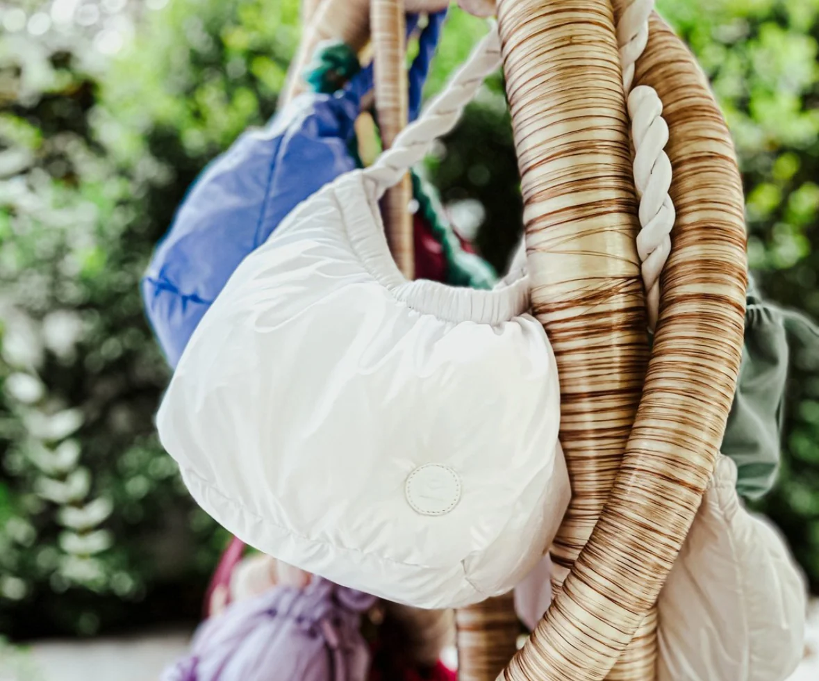 Este bolso acolchado de volumen suave y estilo audaz fusiona funcionalidad con un diseño moderno y despreocupado. Fabricado en nylon reciclable de acabado sutilmente brillante, es ligero, lavable y perfecto para el ritmo contemporáneo.