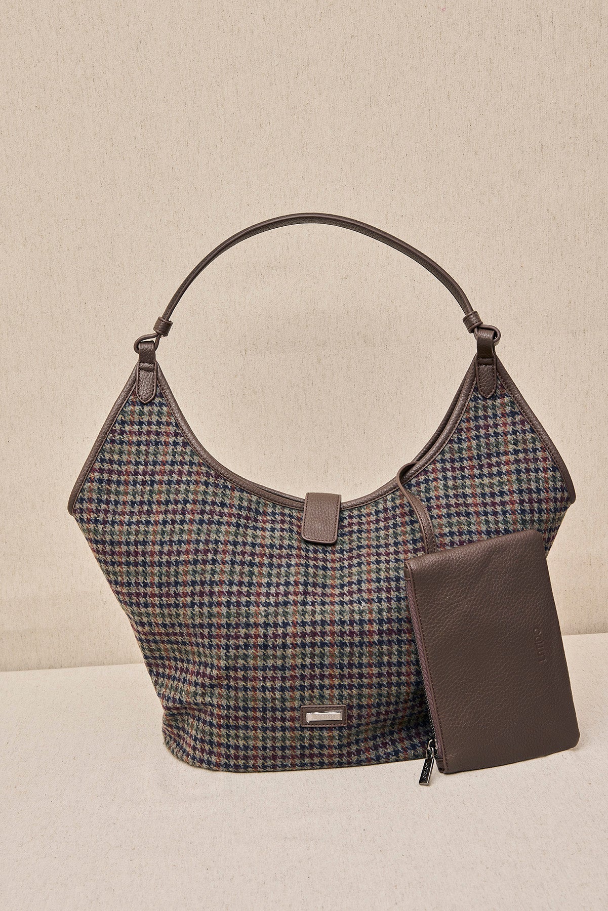 Este bolso combina la calidez del tejido con el acabado elegante de la piel ecológica. Su silueta fluida se adapta a tu ritmo diario, mientras el asa única y el monedero extraíble lo hacen tan práctico como especial.