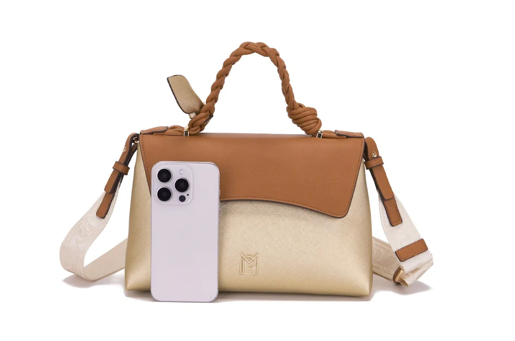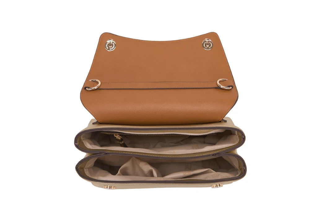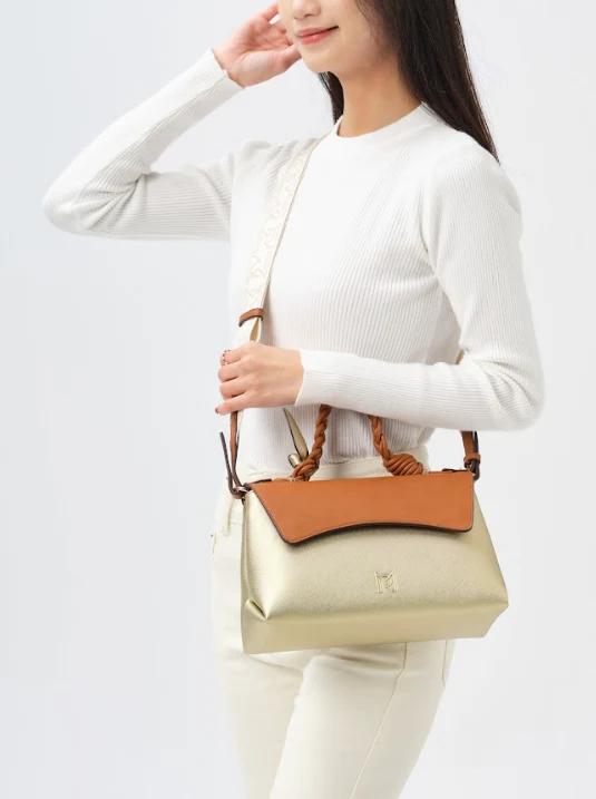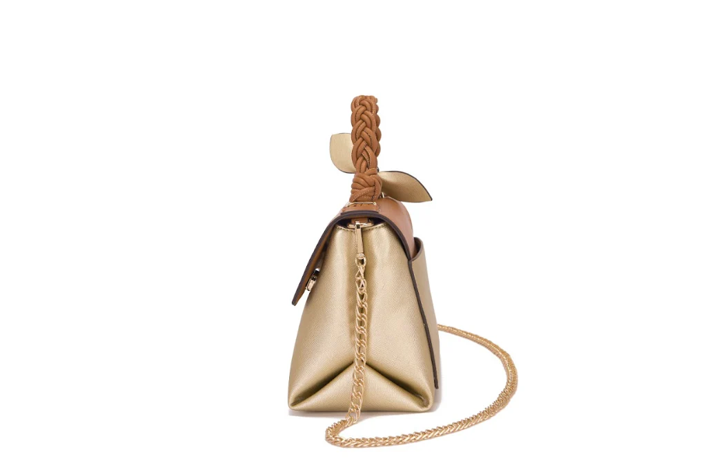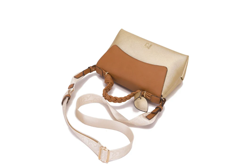 Nuestro diseño TRECCIA, confeccionado en oro ECO SAFFIANO y ECO cuero es un versátil lleno de moda, se convierte en un “todo” gracias a su cierre con tapa, protege todos tus básicos, doble compartimento, bolsillo interior con cremallera y bolsillo exterior adicional para tu móvil . Lúcelo en cualquier ocasión, llévalo del asa trenzada o con bandolera. Apto para todos tus outfits.