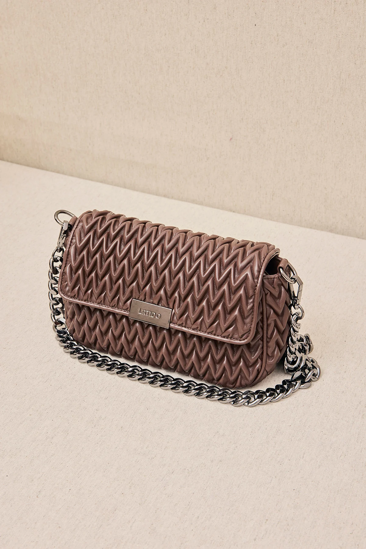 Un bolso estructurado con acabado acolchado y cierre metálico. Perfecto para combinar funcionalidad y estética en tus jornadas de ciudad.