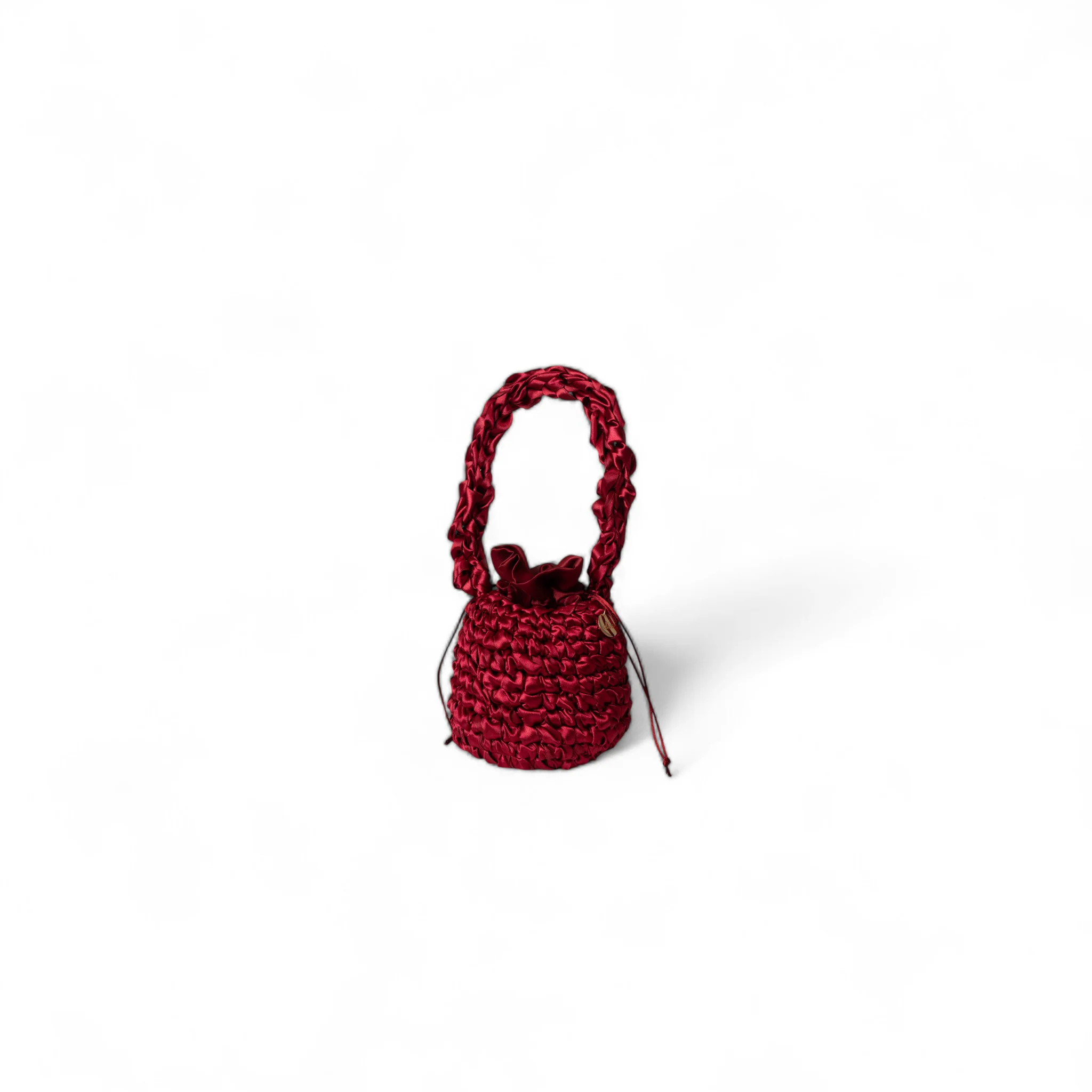 Bolso tejido a mano con cinta, un accesorio único que combina la elegancia y la funcionalidad. Su forro satinado protege el interior y le da un toque de sofisticación. Con un diseño práctico, cuenta con un asa corta para llevarlo en la mano, convirtiéndolo en el complemento ideal para cualquier ocasión. Su estilo artesanal y delicado lo hace perfecto para quienes buscan un accesorio exclusivo y versátil.