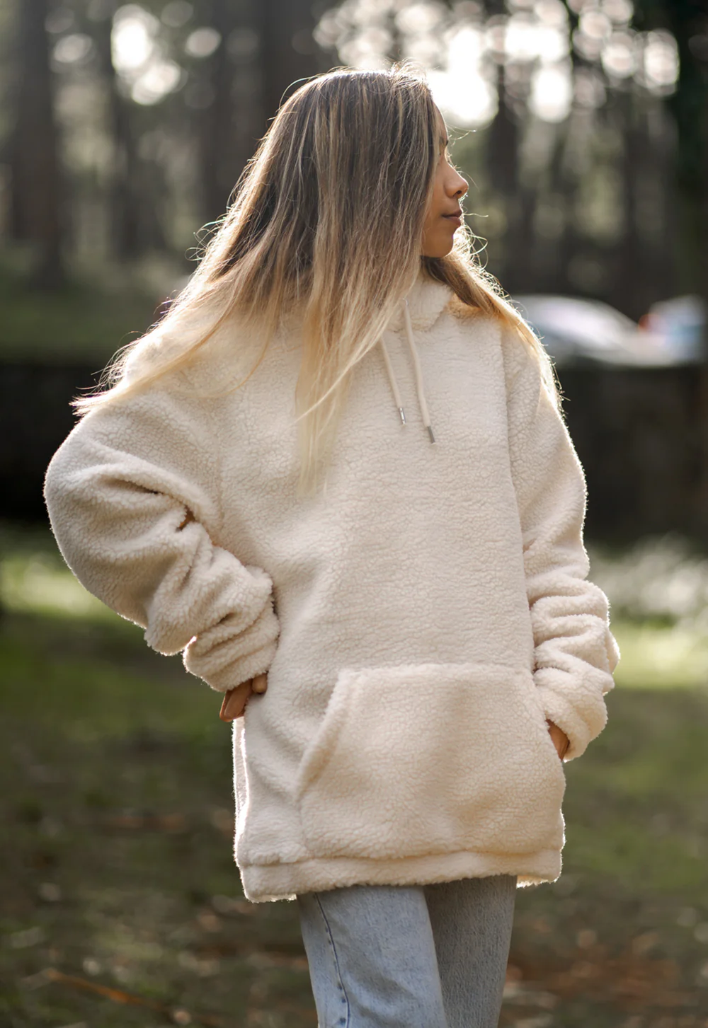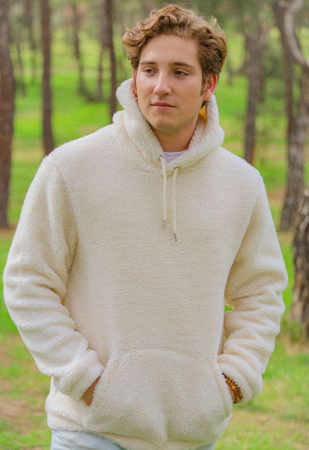 Sudadera canguro con capucha confeccionada en tejido de borrego