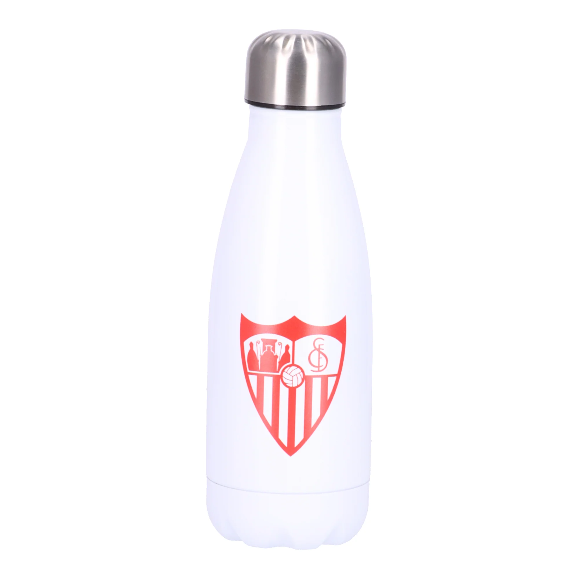 Botella de agua 550ml del Sevilla FC de la colección oficial . Con fondo blanco y escudo impreso a todo color y tapón plateado.