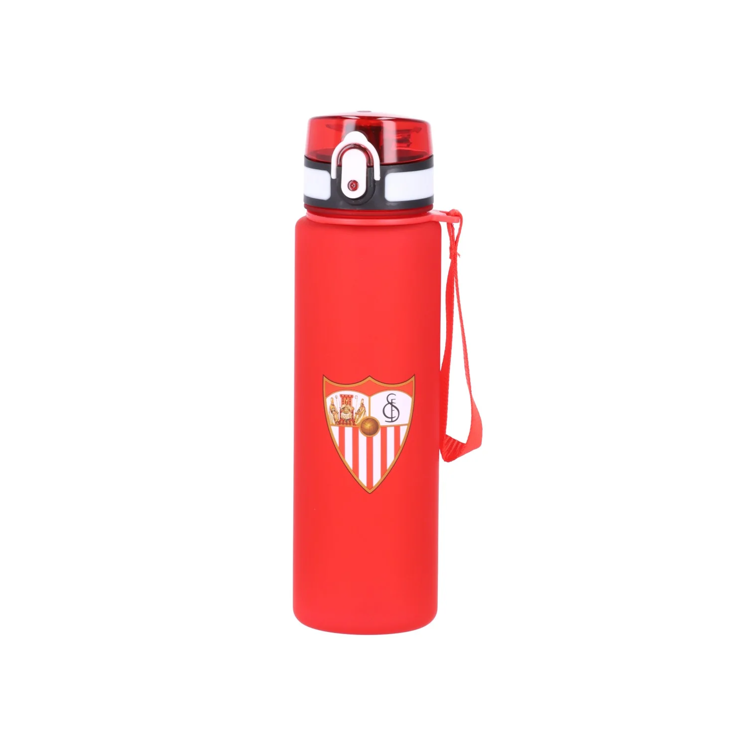 Botella de agua 650ml del Sevilla FC de la colección oficial . Con fondo rojo y escudo impreso a todo color y tapón plateado.