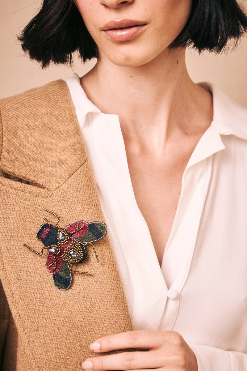 Este broche abeja captura la esencia del estilo boho con su diseño detallado en resina y tejido. Es el complemento perfecto para quienes buscan añadir un toque natural y creativo a su look.