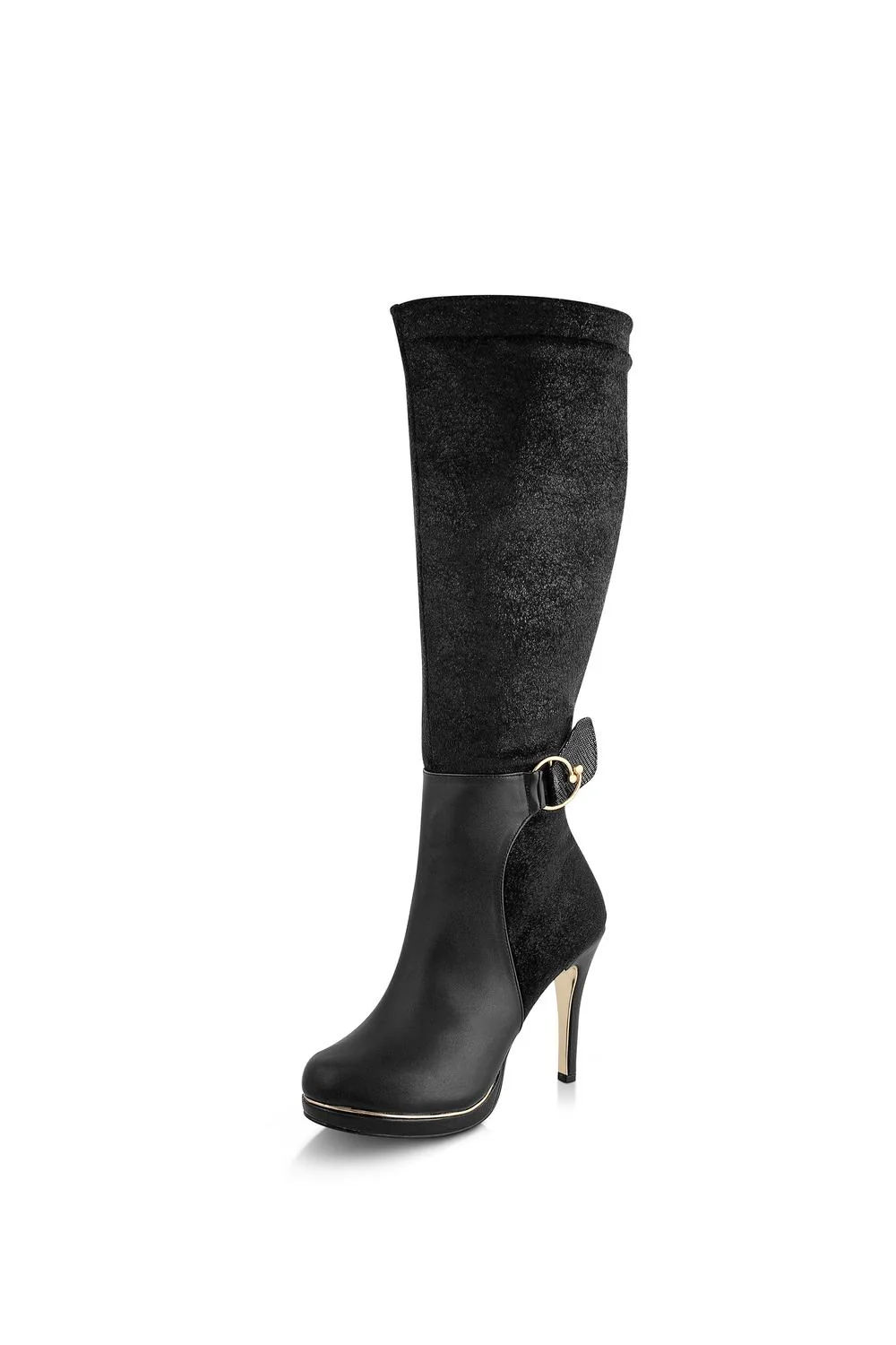 - Bota de tacón con cinto brilloso y herraje metálico en costado.