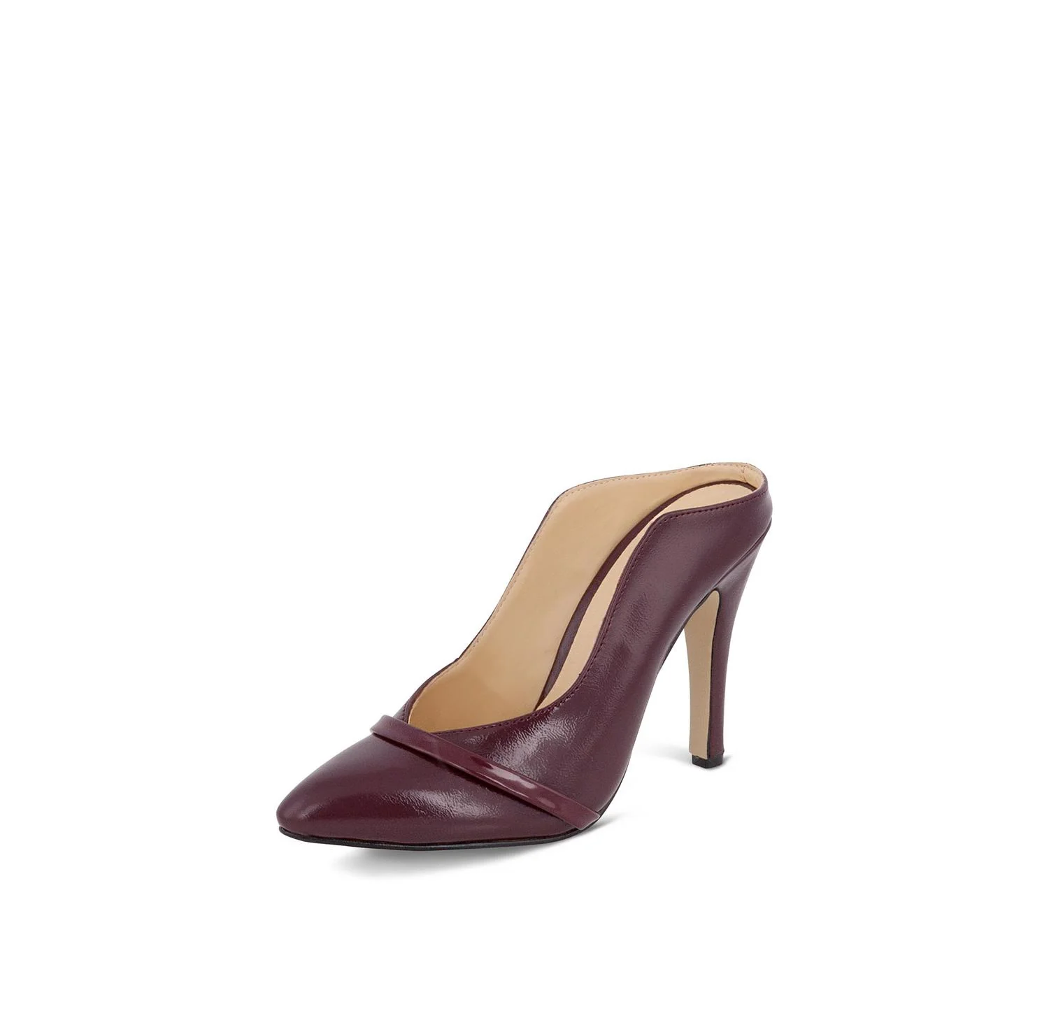 Zapatilla destalonada en material charol sintético, escote pronunciado en empeine, látigo decorativo en punta y suela en color negro. prod. # 02-1176