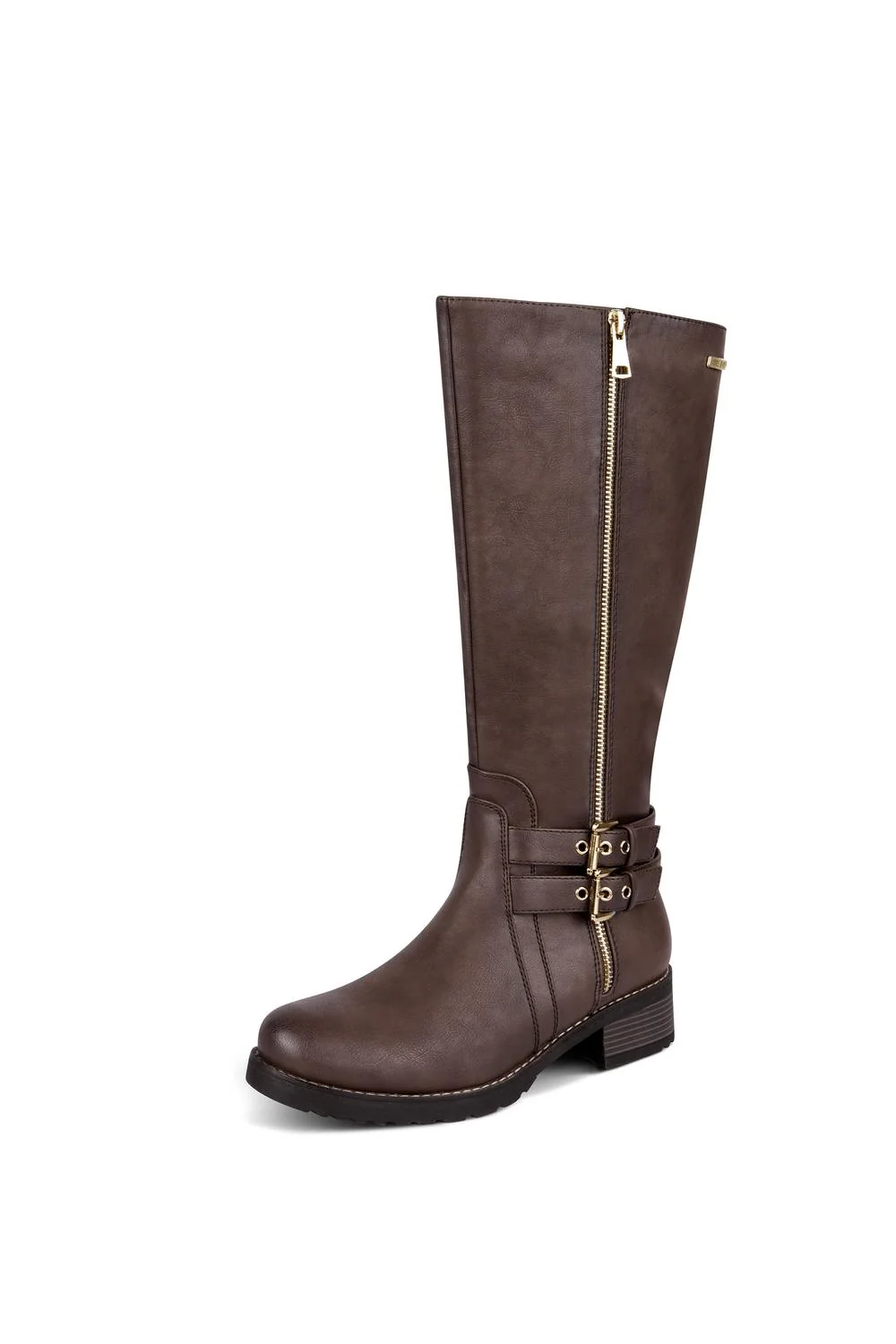 Bota de tacón bajo, cierre al costado y dos pulseras con hebillas decorativas. prod. # 02-0345