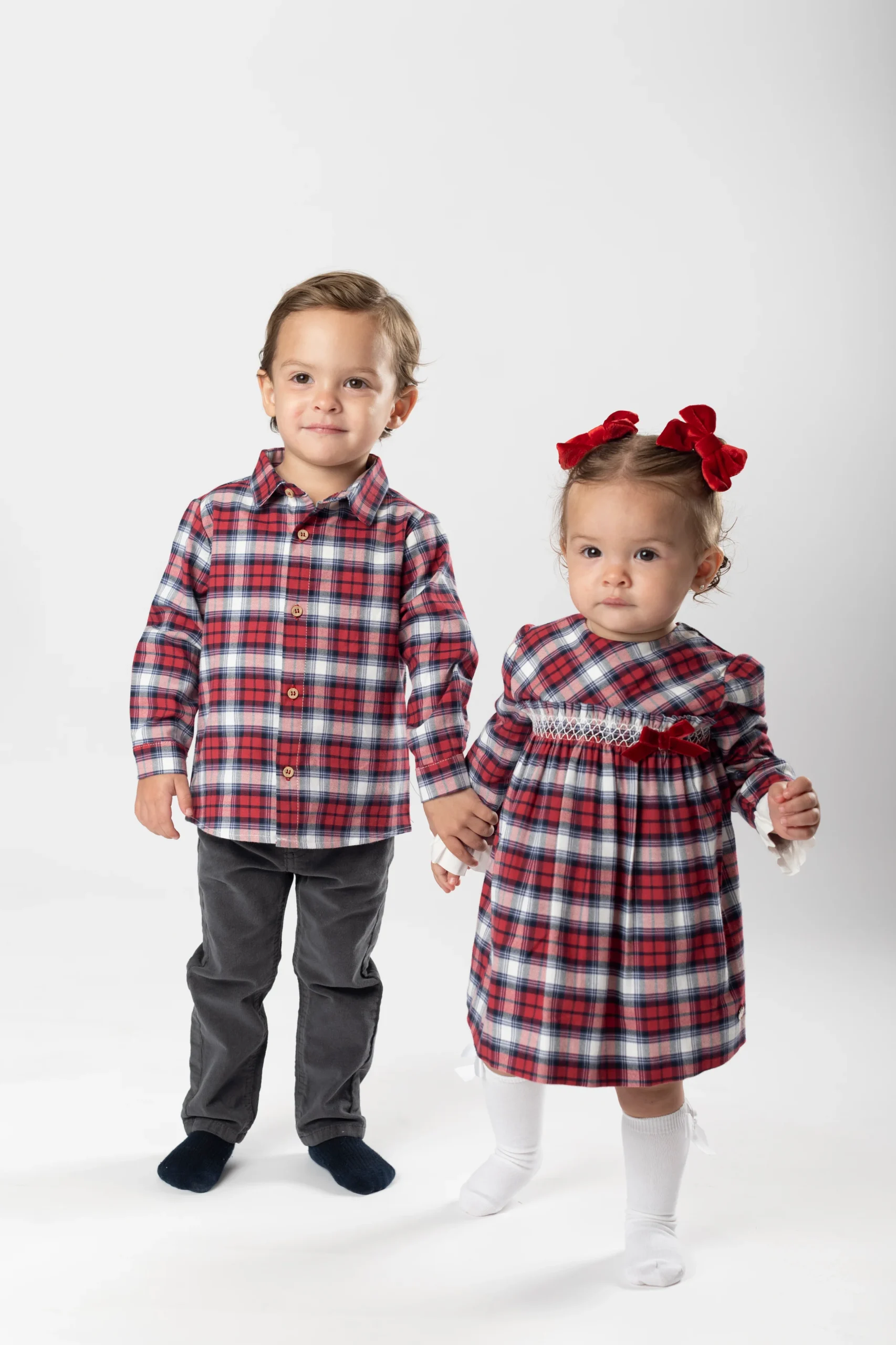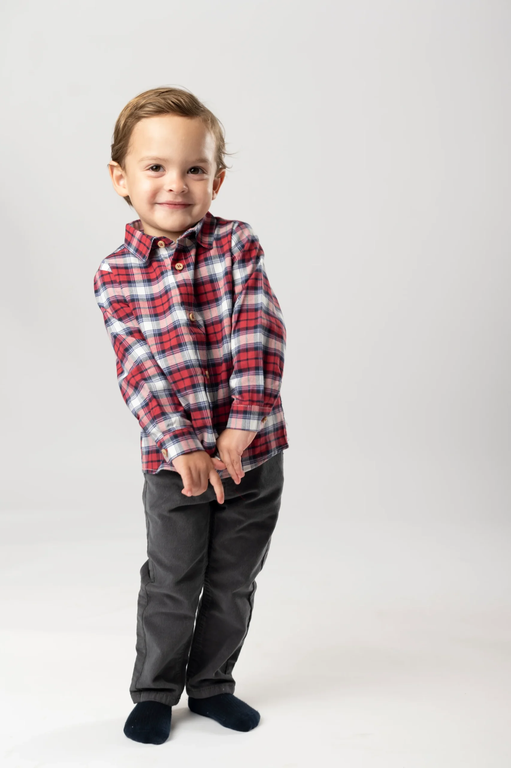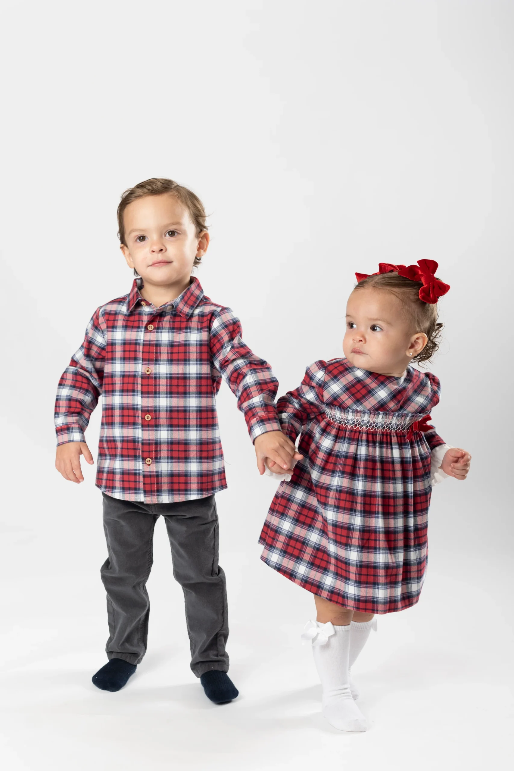 ¡Hermosa y elegante camisa de cuadros!¡Ideal para esta epoca navideña! Camisa de cuello camisero, manga larga para niño con trabilla y botón en el lateral para poder recogerla y ajustar el largo y cierre con botones en la parte delantera.