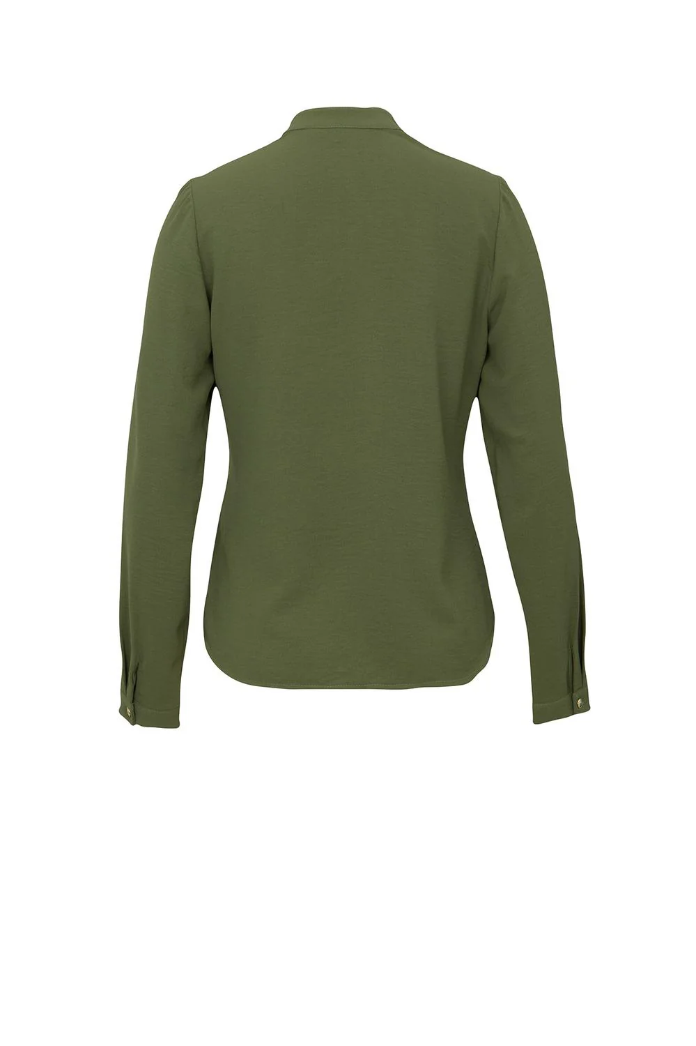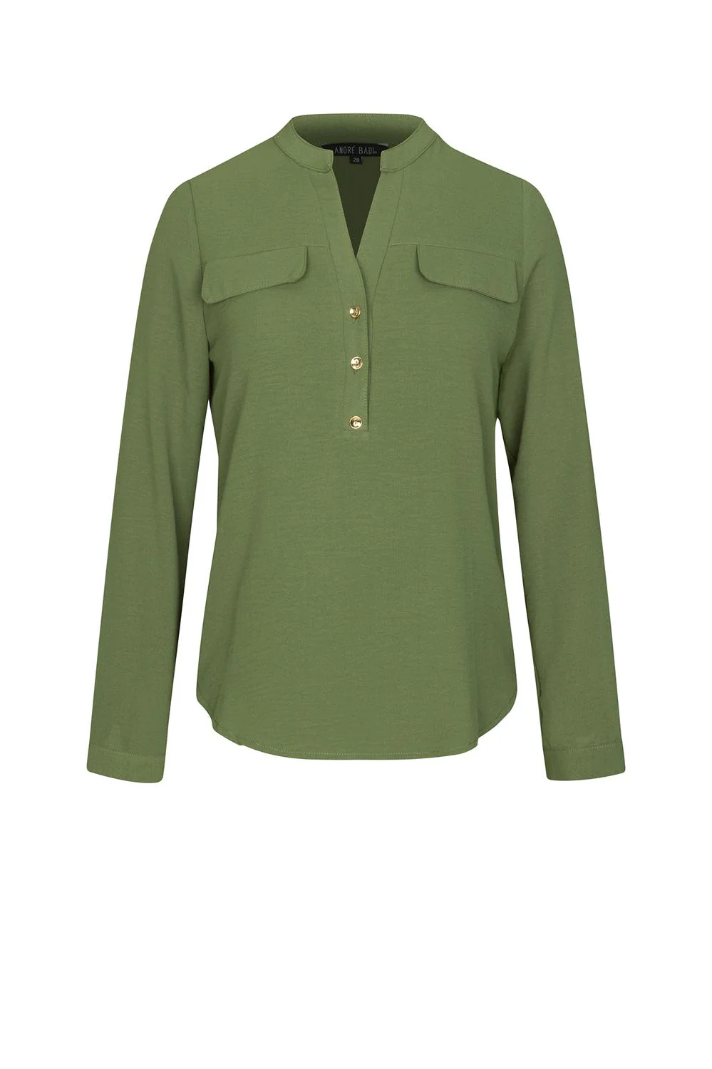 Camisa con escote redondo, abertura frontal, simulación de bolsillos, botonadura y mangas largas. 19-1474