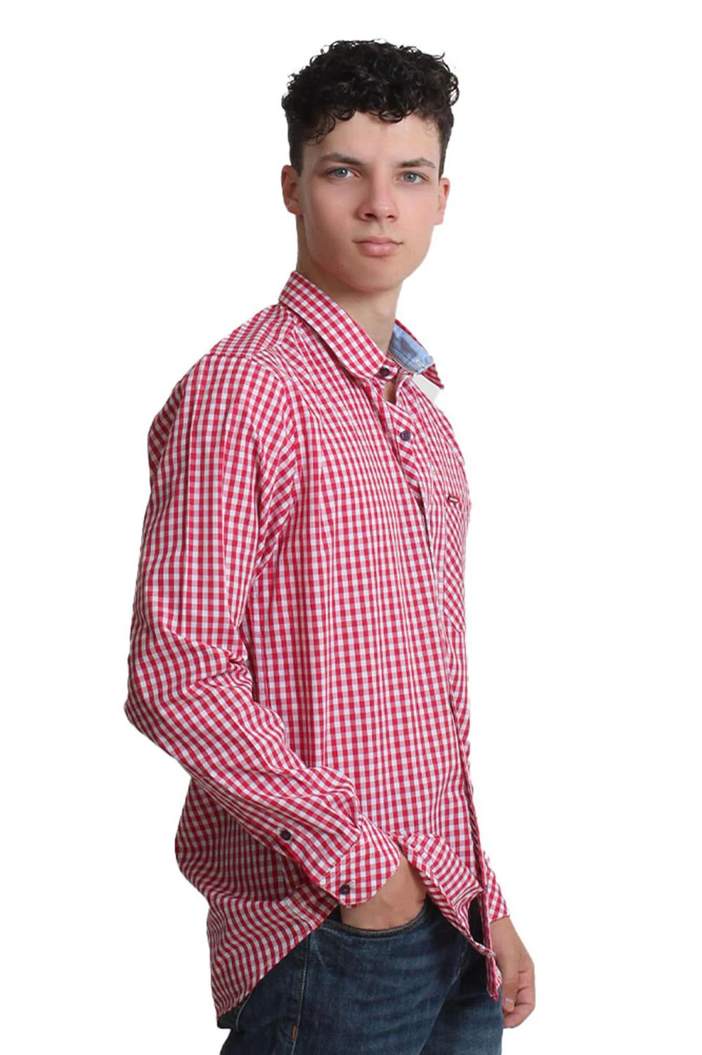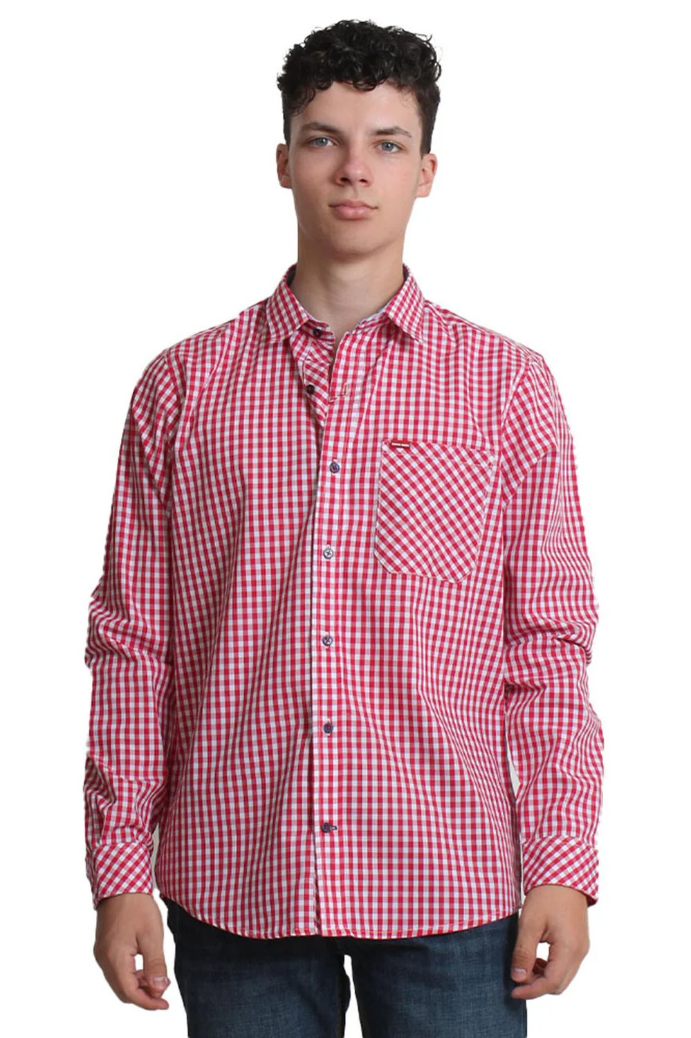 CAMISA MANGA LARGA CABALLERO COLOR ROJO CUADRO CHICO 80% ALGODÓN 20% POLIESTER
