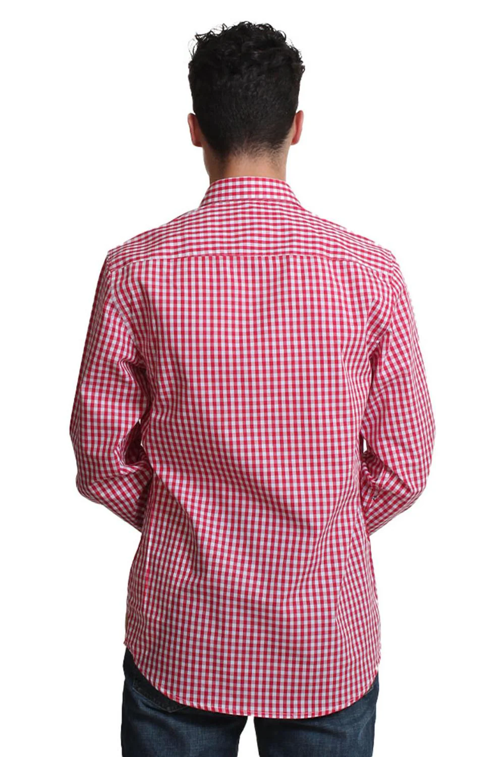 • CAMISA MANGA LARGA CABALLERO COLOR ROJO CUADRO CHICO 80% ALGODÓN 20% POLIESTER
