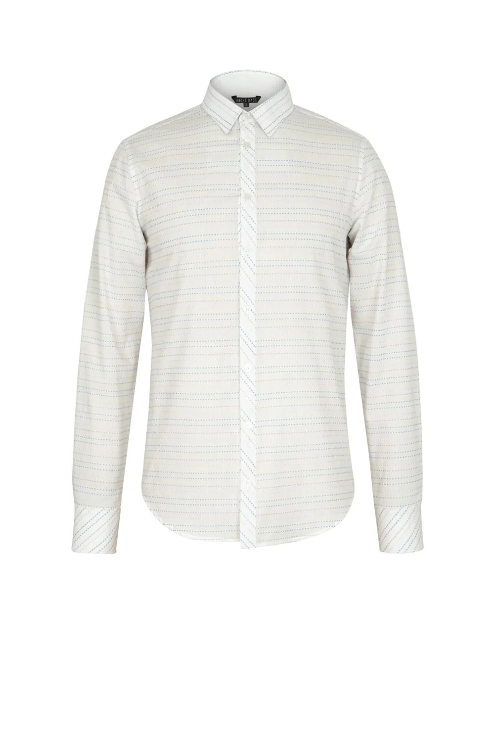 André Badi Camisa slim fit con cuello camisero, botonadura frontal, mangas largas, puños con detalles angulares, bata en espalda y detalle de colocación estratégica de estampado en diagonal. Composicion100% Algodón Modelo 19-1200