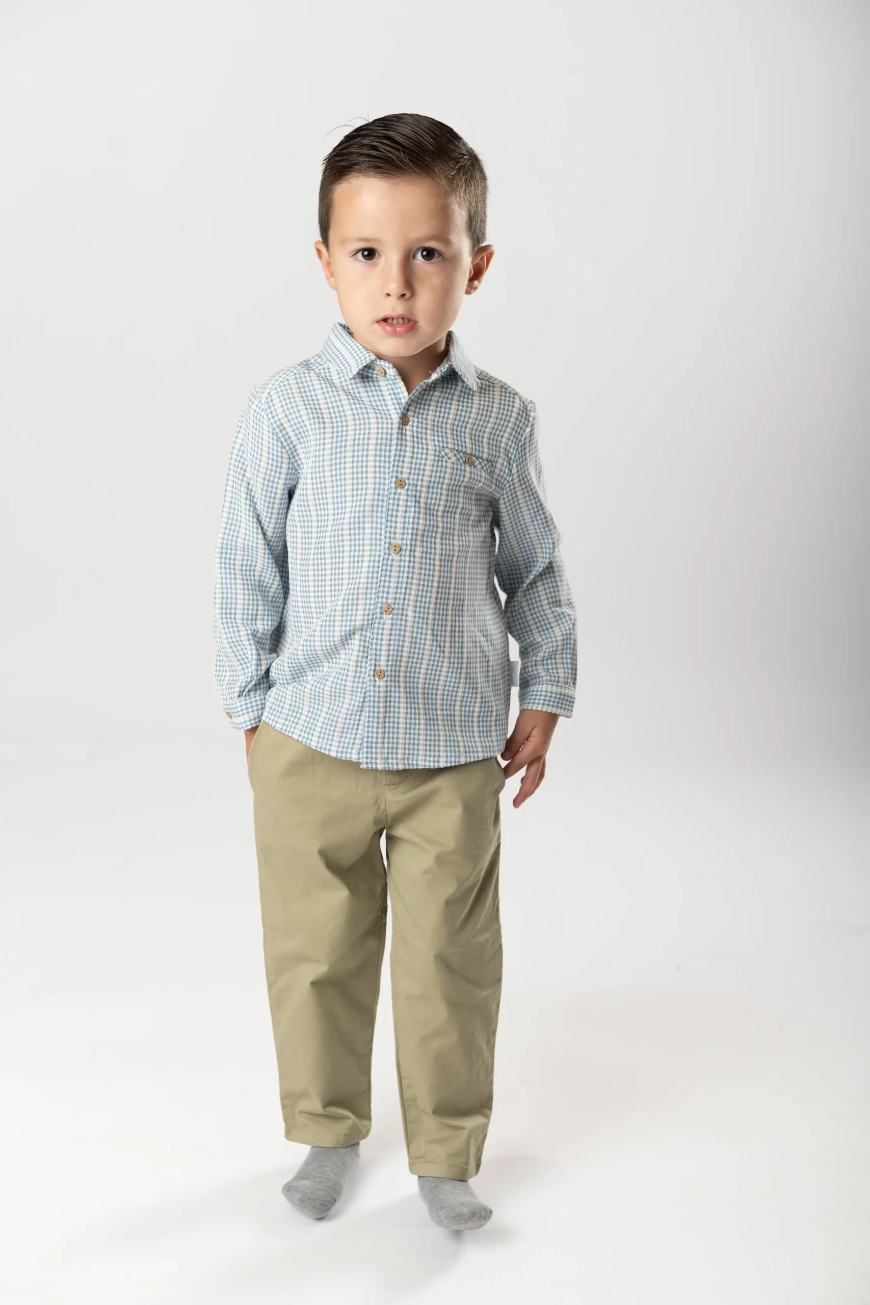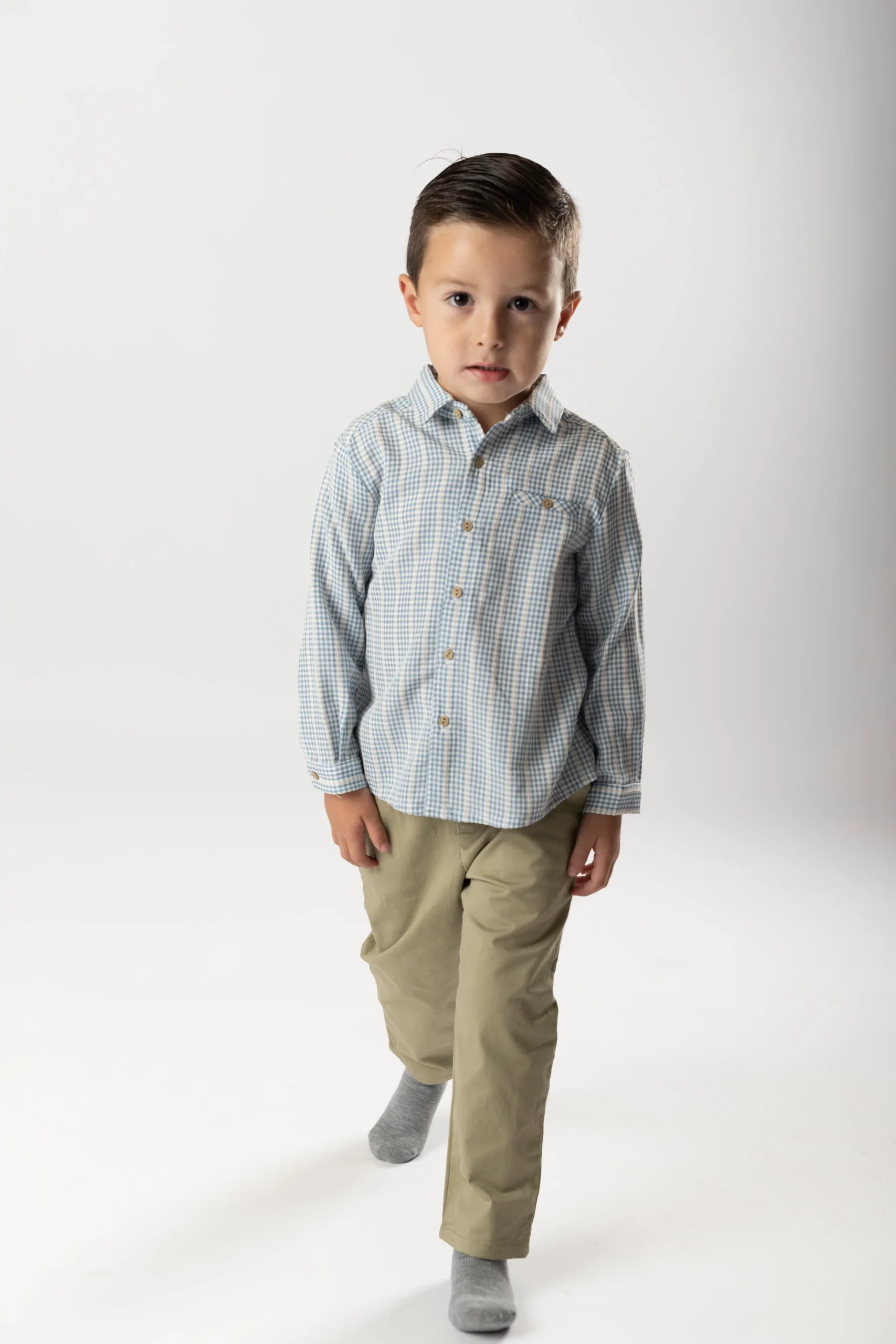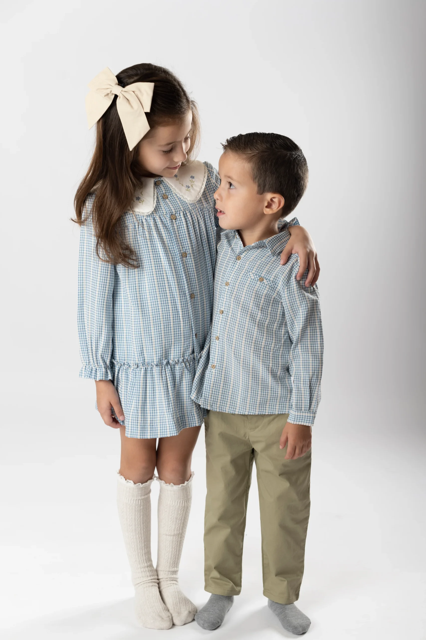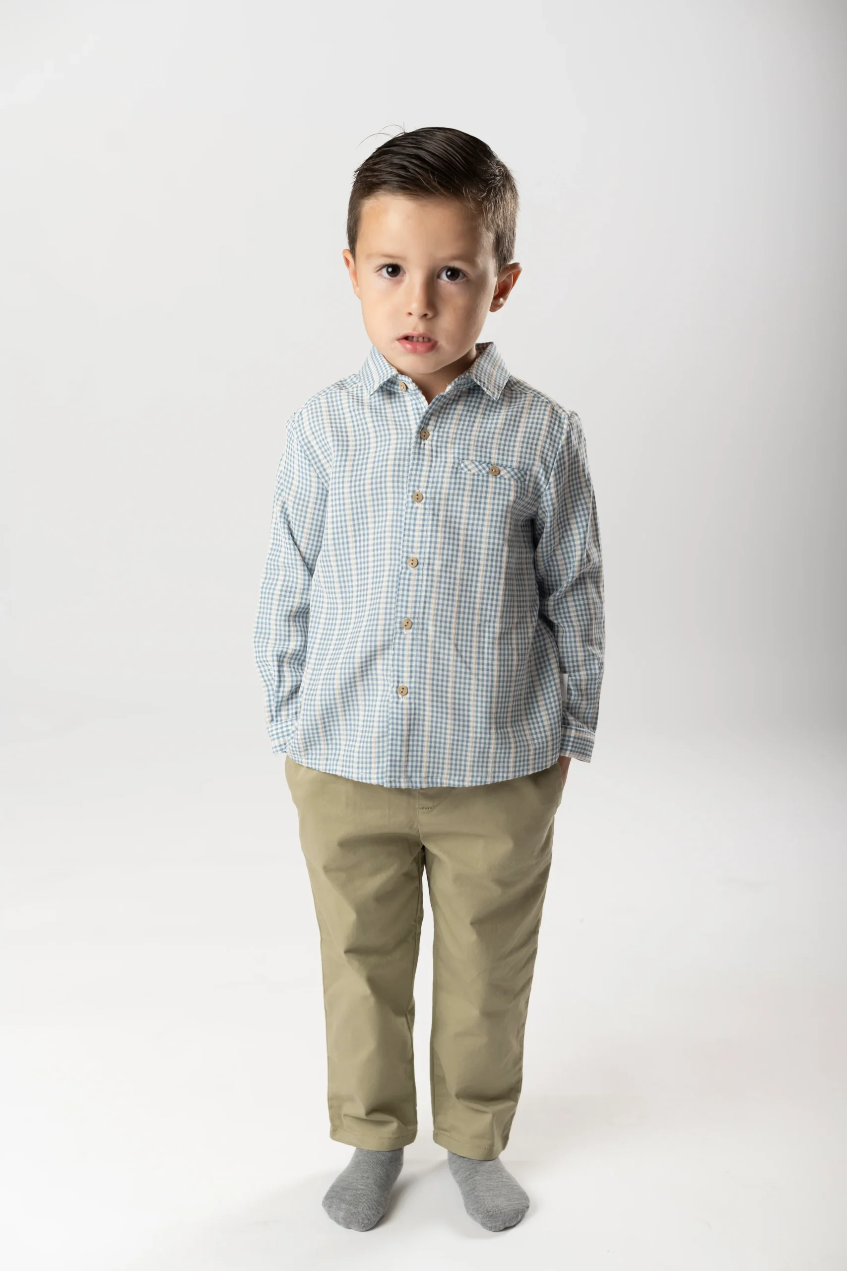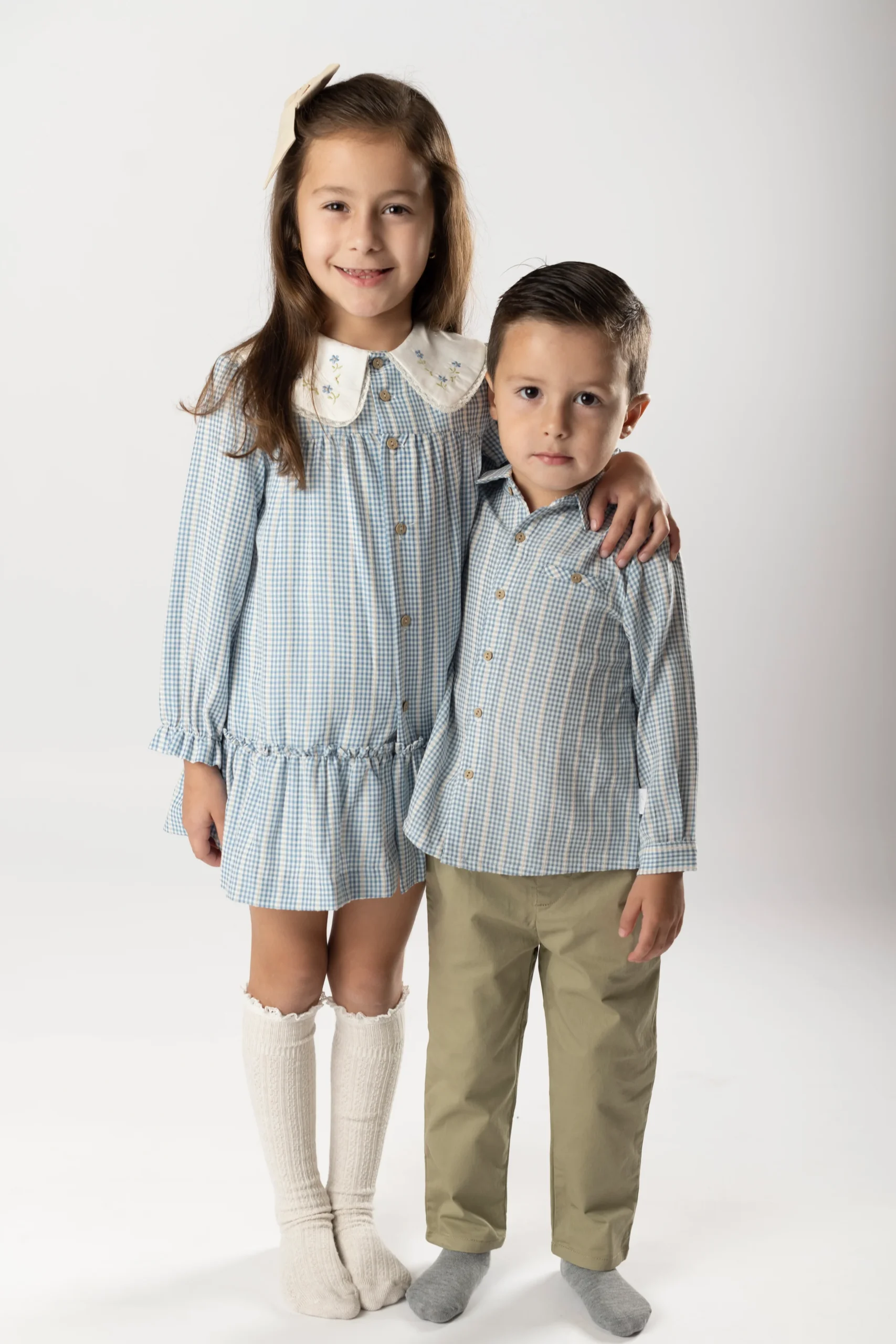 ¡Hermosa y elegante camisa de cuadros! Camisa de cuello camisero, manga larga con boton en puños, cierre de botones centrales en la parte delantera. Detalle de bolsillo en el pecho simulado.