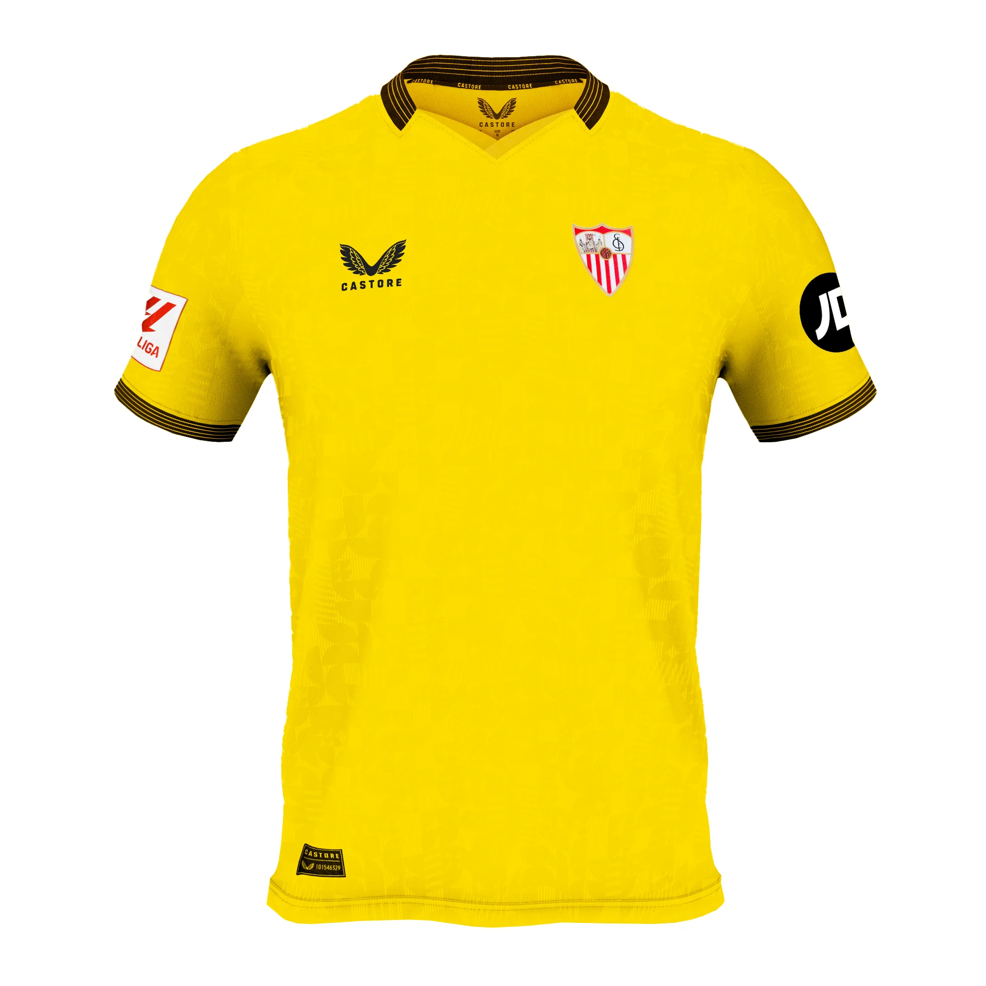 La camiseta de portero amarilla para adultos de la Segunda Equipación para la temporada 23/24 es la que visten los guardametas del Sevilla FC cuando juegan como visitantes.